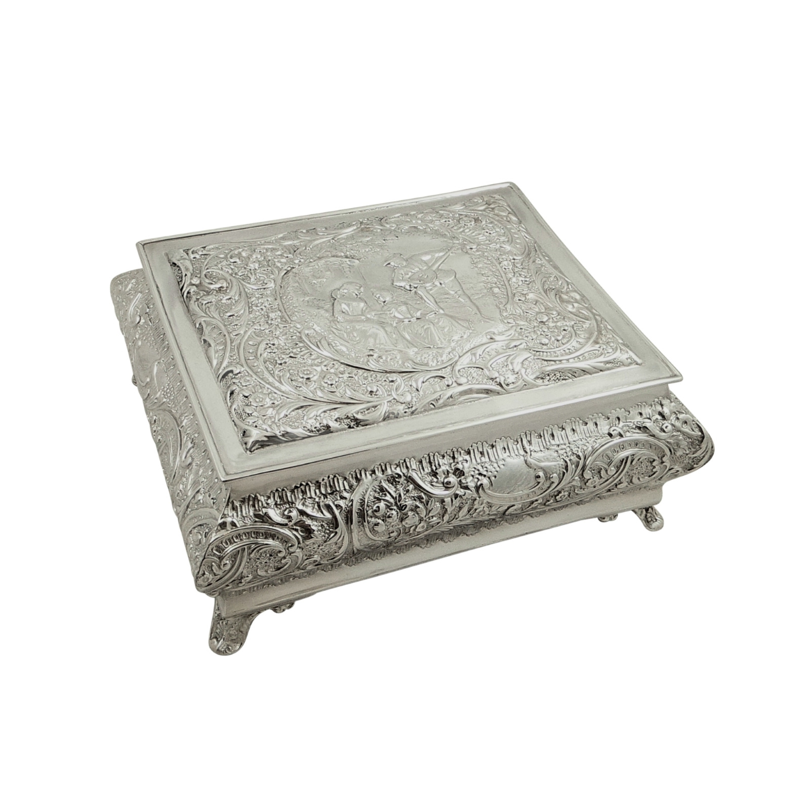 Large Antique Edwardian Sterling Silver Jewellery / Trinket Box 1901