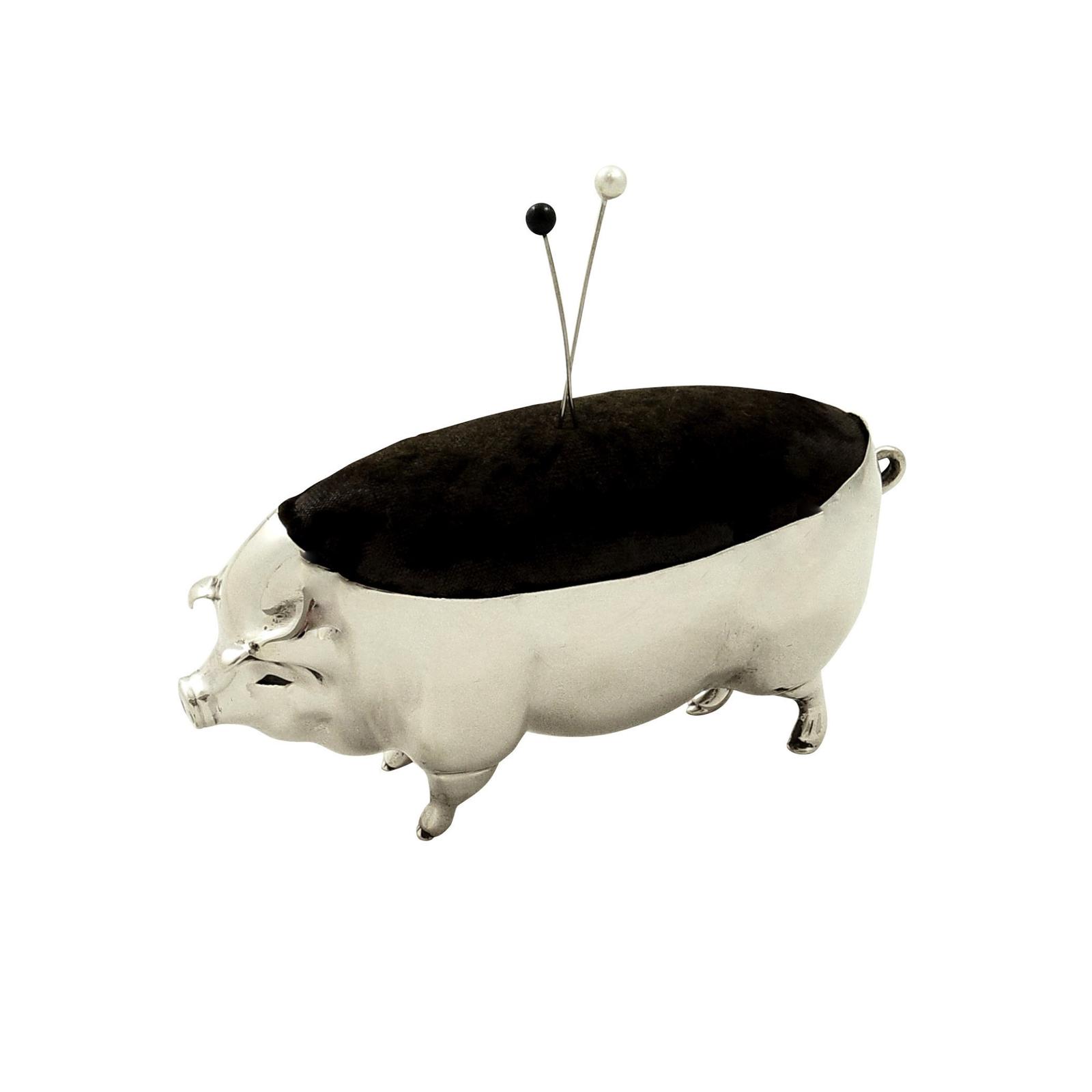 Large Antique Edwardian Sterling Silver Pig Pin Cushion 1903