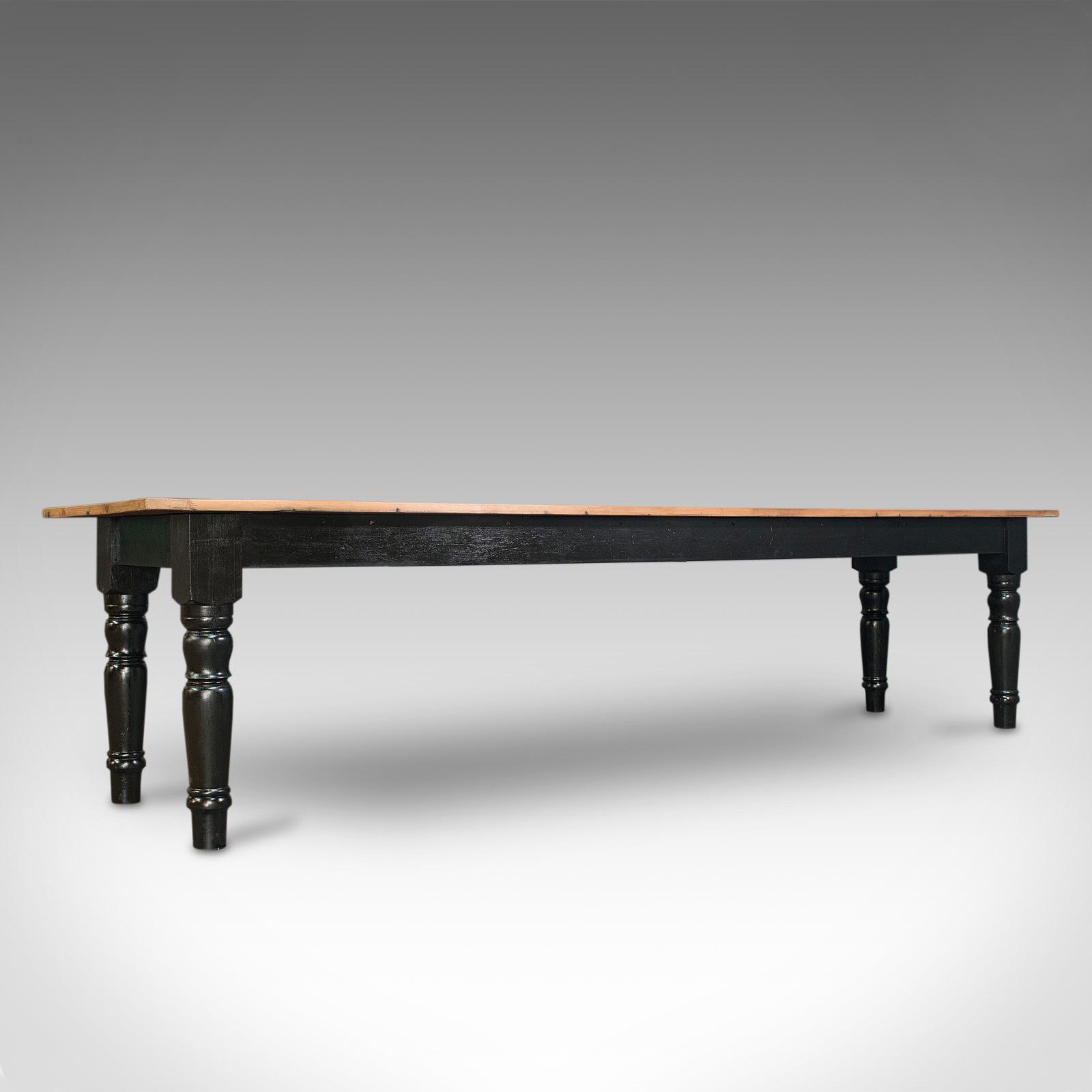 Large Antique Farmhouse Dining Table, English, Pine, Kitchen, Victorian c.1900