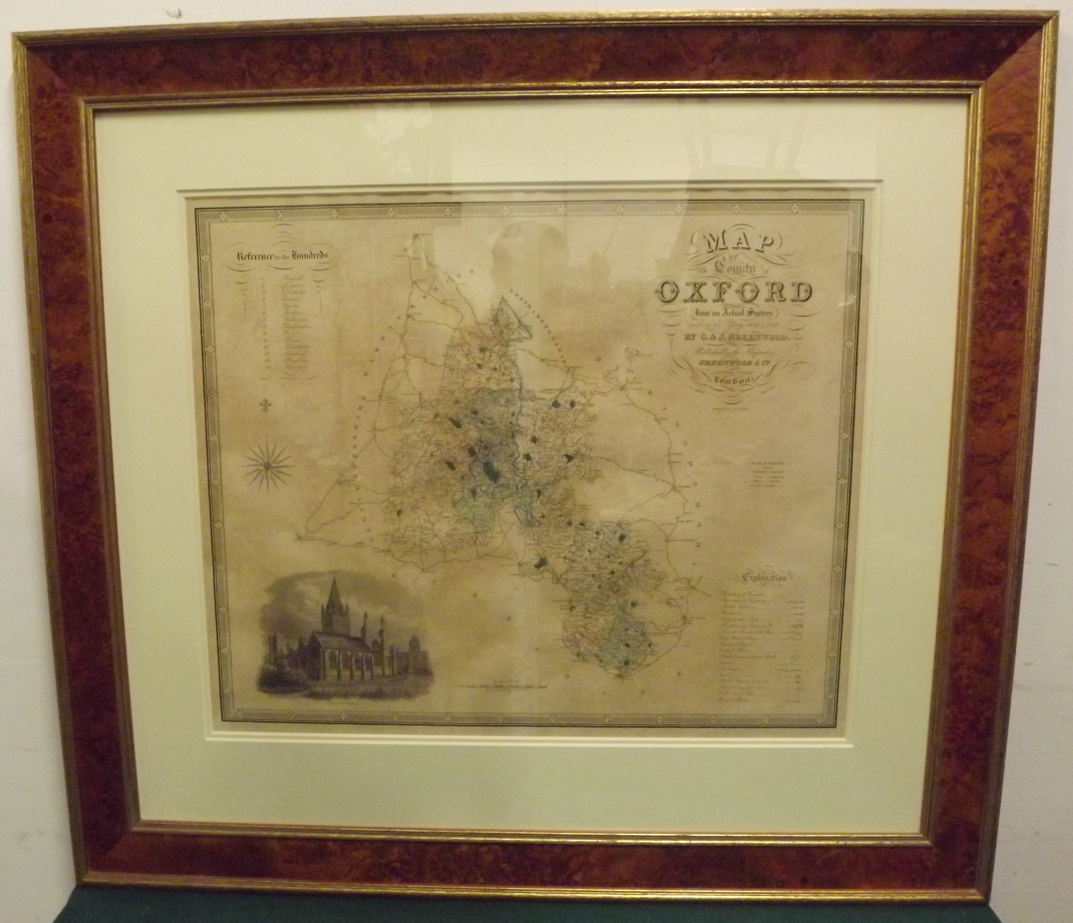 Large Antique Framed Greenwood Map of Oxfordshire 1834