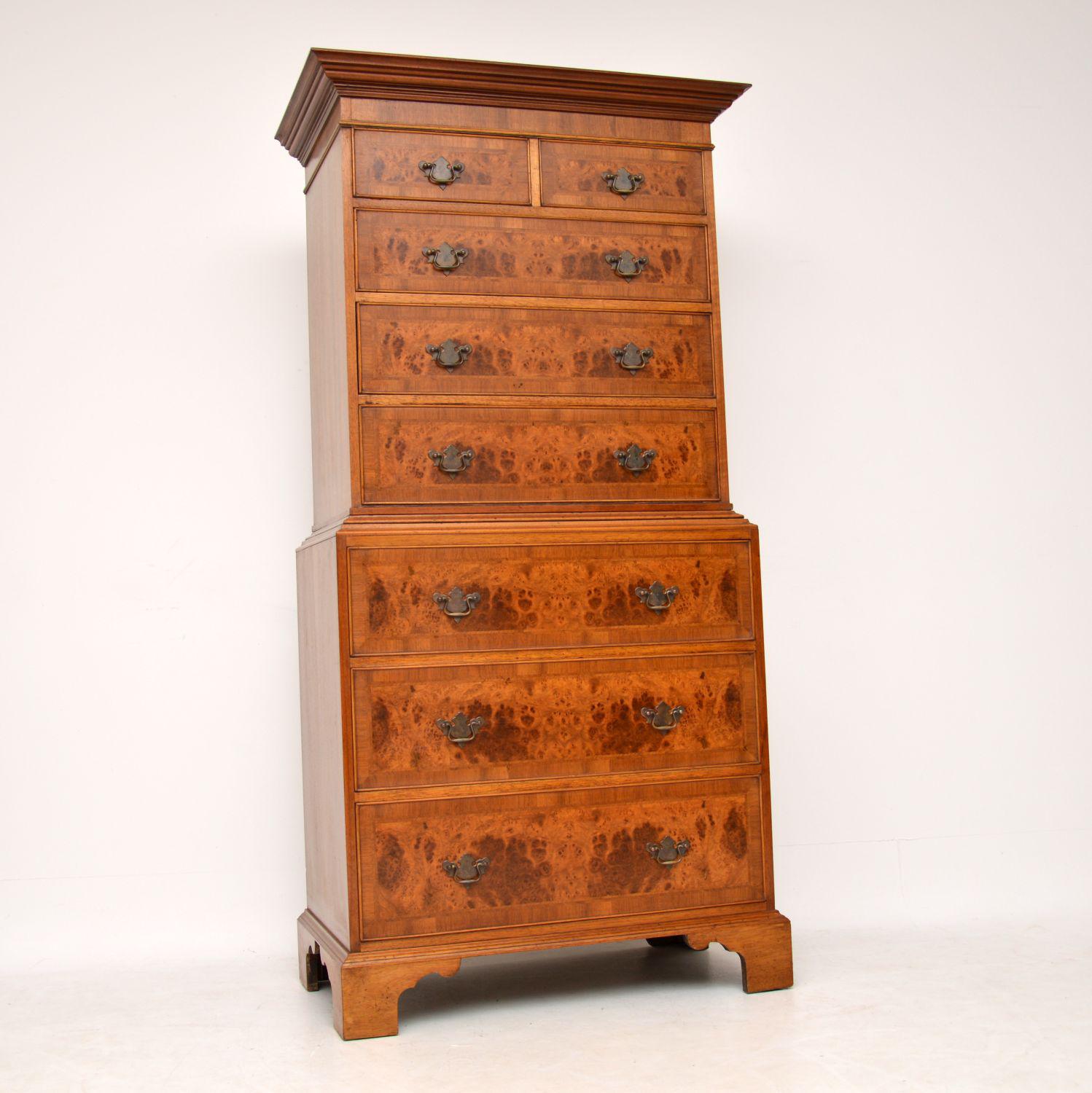 Large Antique Georgian Style Burr Walnut Chest on Chest
