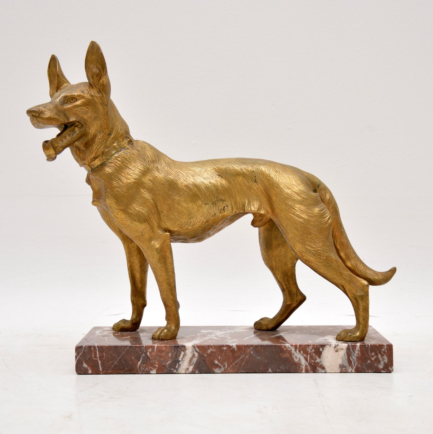 Large Antique Gilt Bronze Dog Sculpture by Robert Bousquet