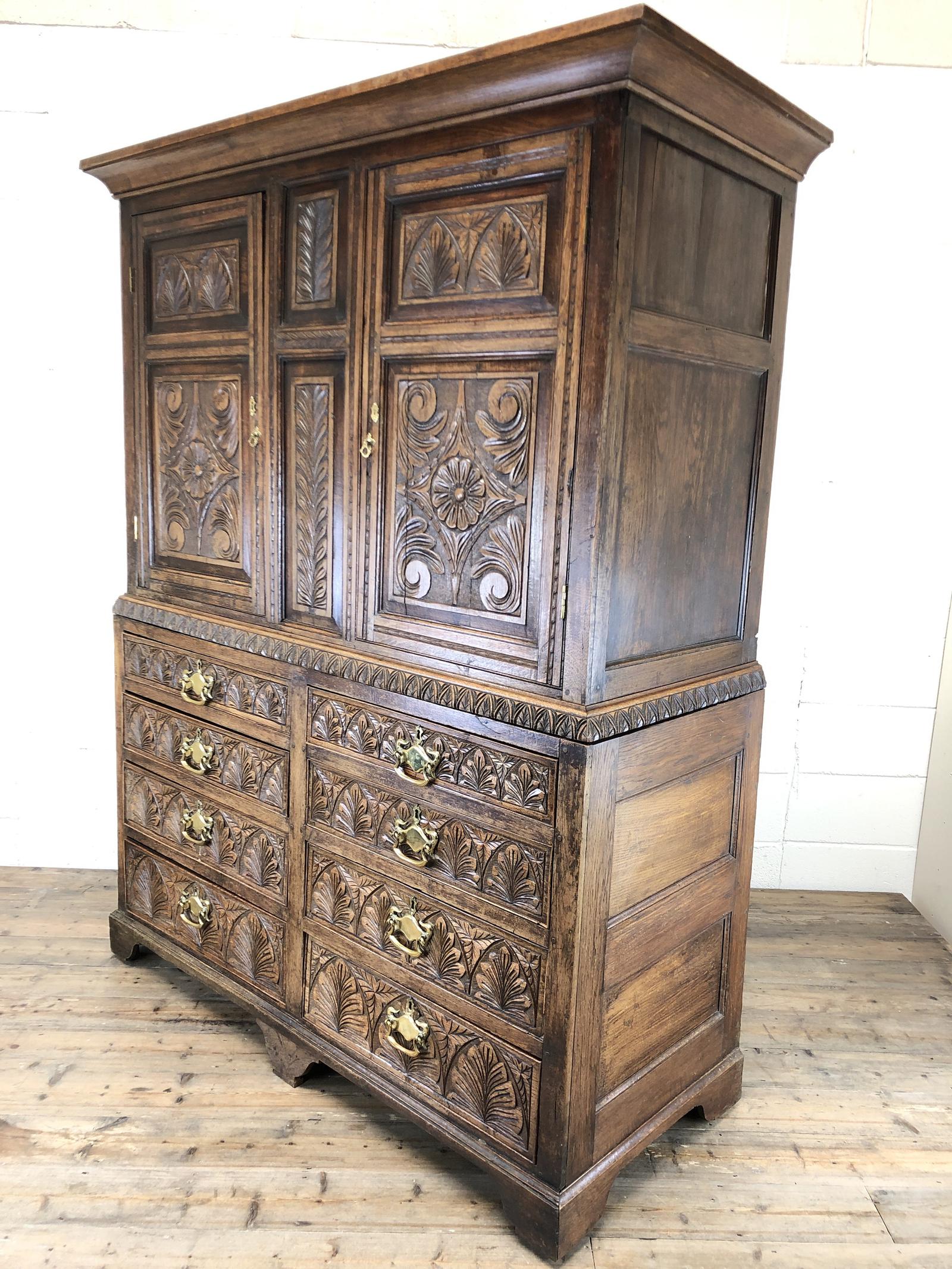 Large Antique Heavily Carved Oak Linen Press Cupboard (1 of 17)
