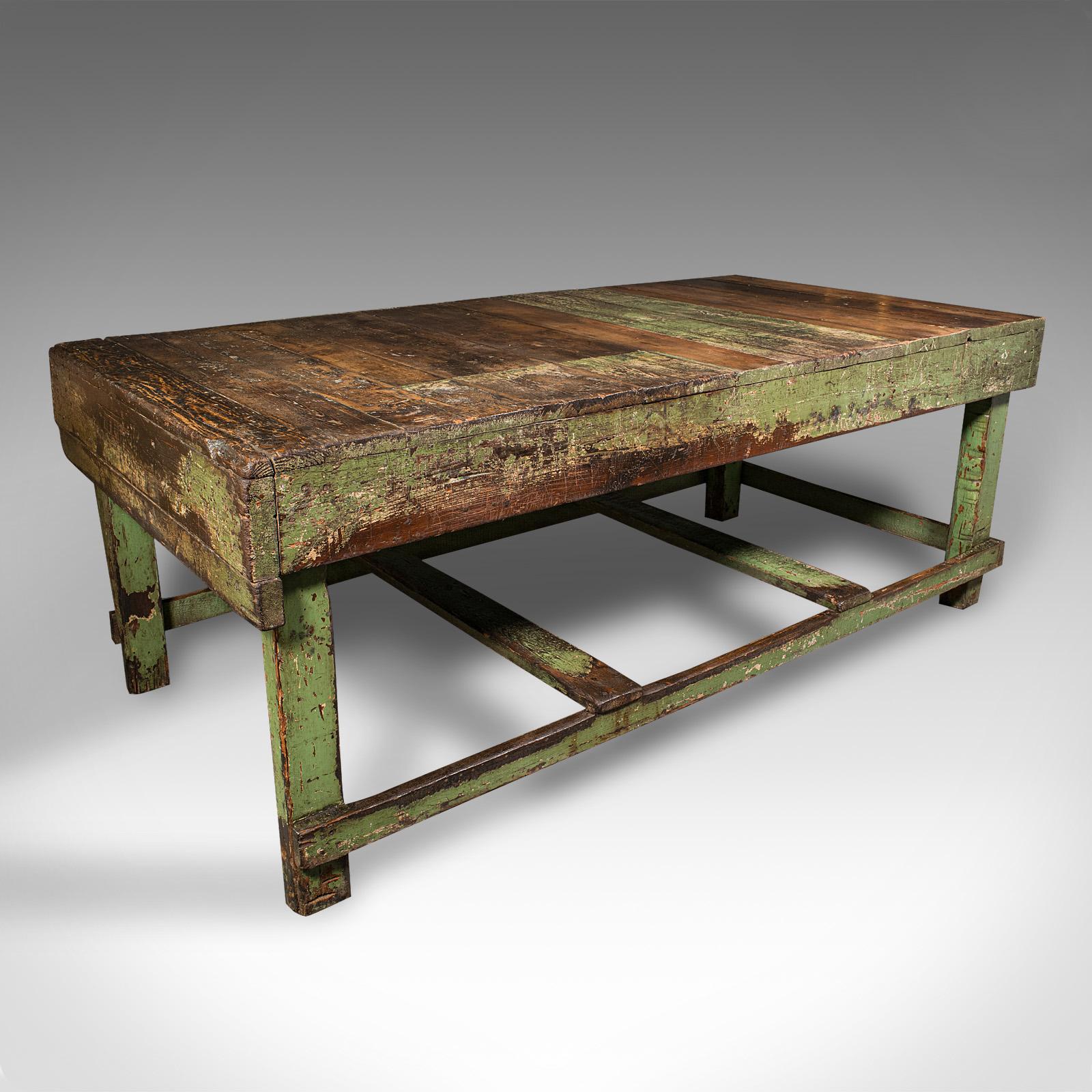 Large Antique Industrial Work Table, English, Pine, Factory, Bench, Victorian