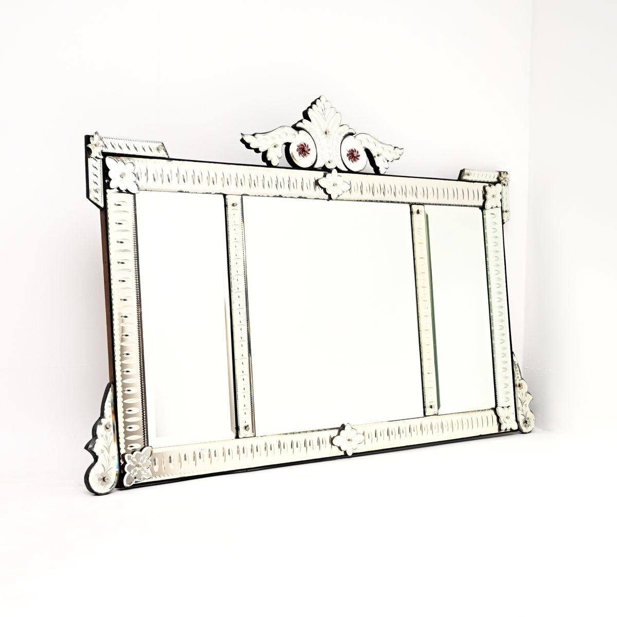 Large Antique Italian Venetian Etched Glass Mirror