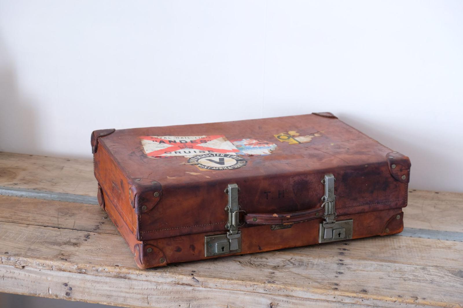 Large Antique Leather Suitcase made by Revelation for Harrords
