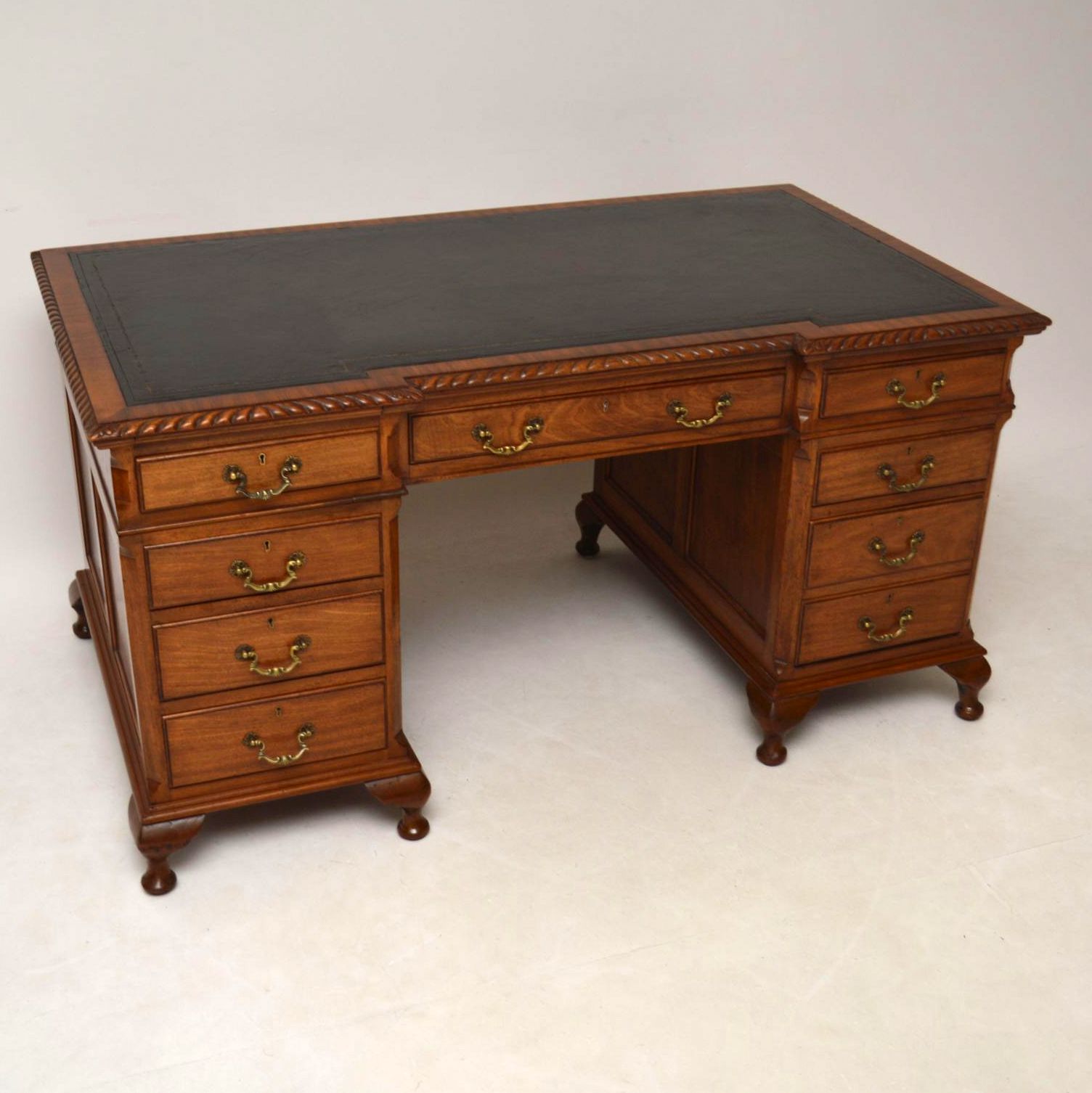 Large Antique Mahogany Leather Top Pedestal Desk (1 of 1)
