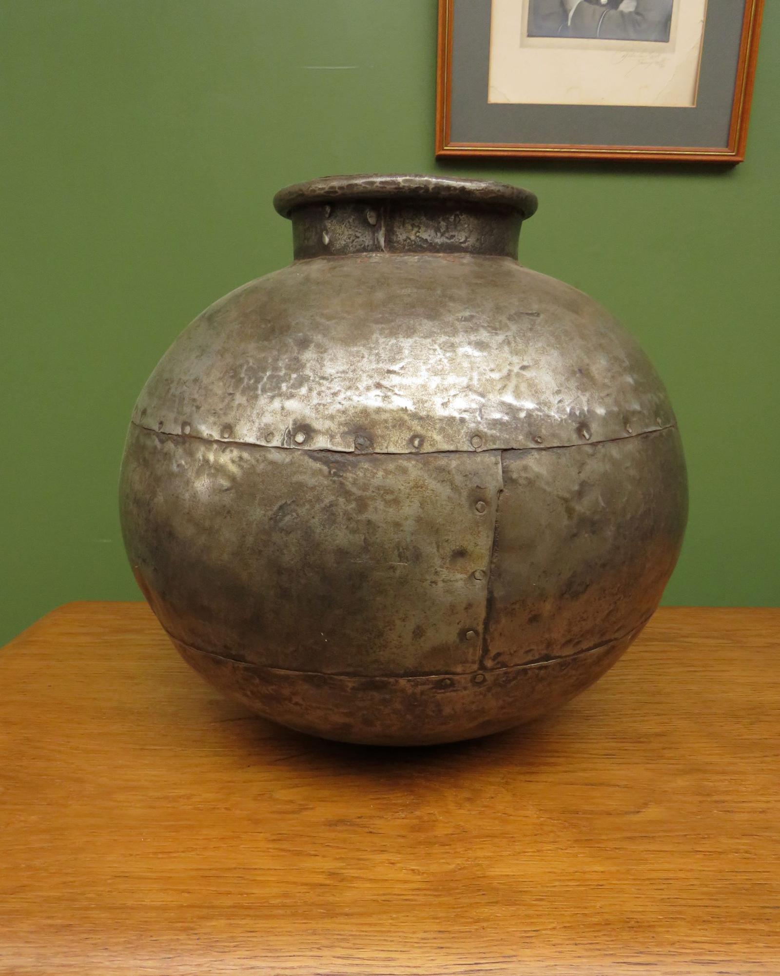 Large Antique Metal Pot, Decorative Vase, early 20th century hammered metal