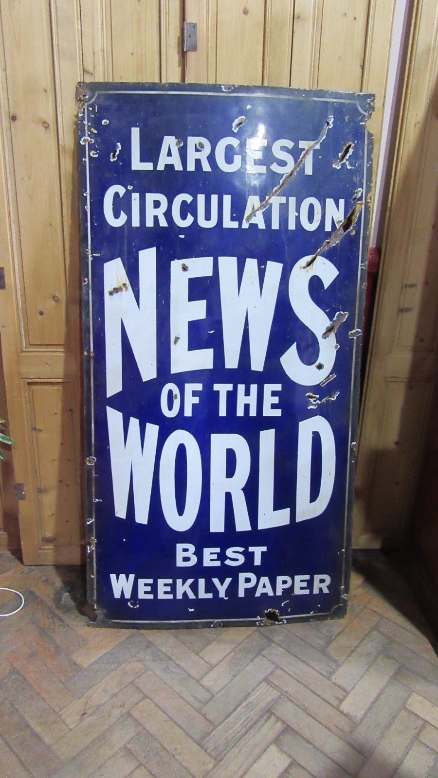 Large Antique News of the World Enamel Advertising Sign