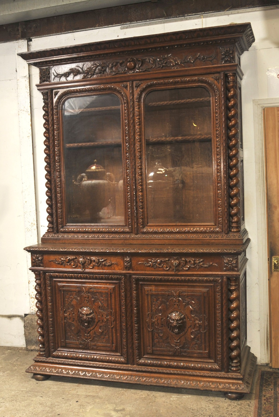 Large Antique Oak Cabinet Bookcase Farmhouse Barley Twist c.1880
