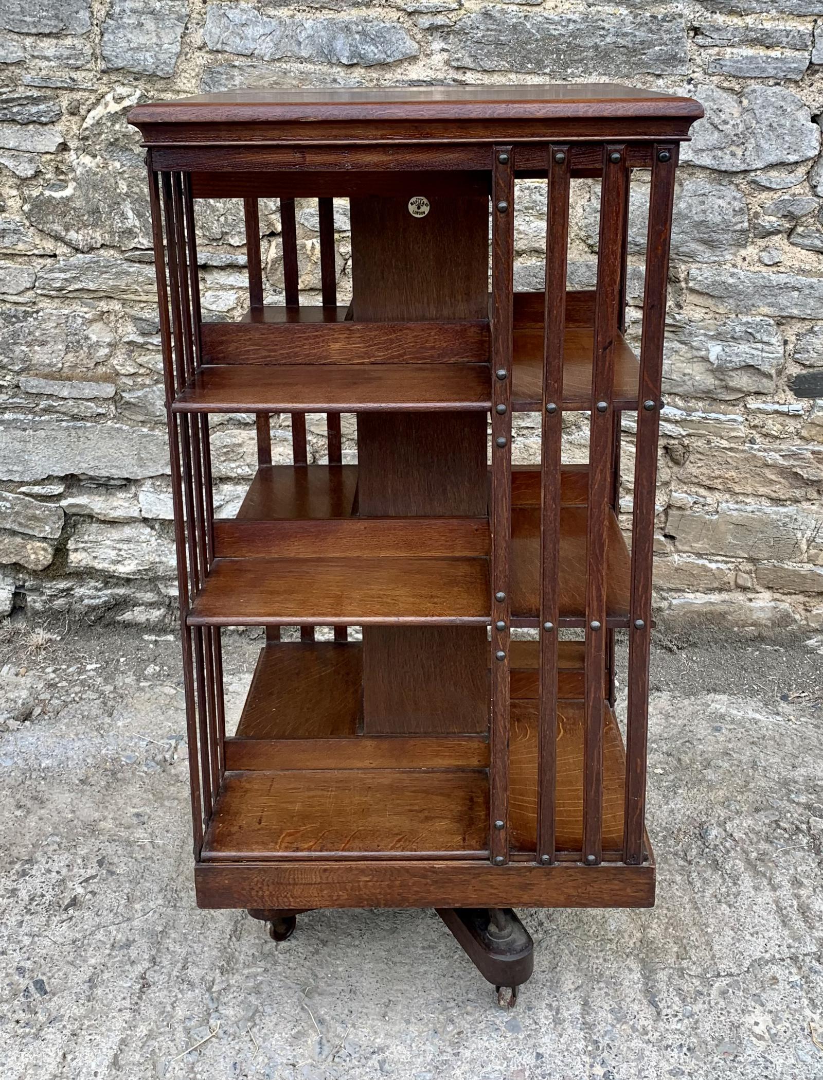 Large Antique Oak Revolving Bookcase by Maple & Co