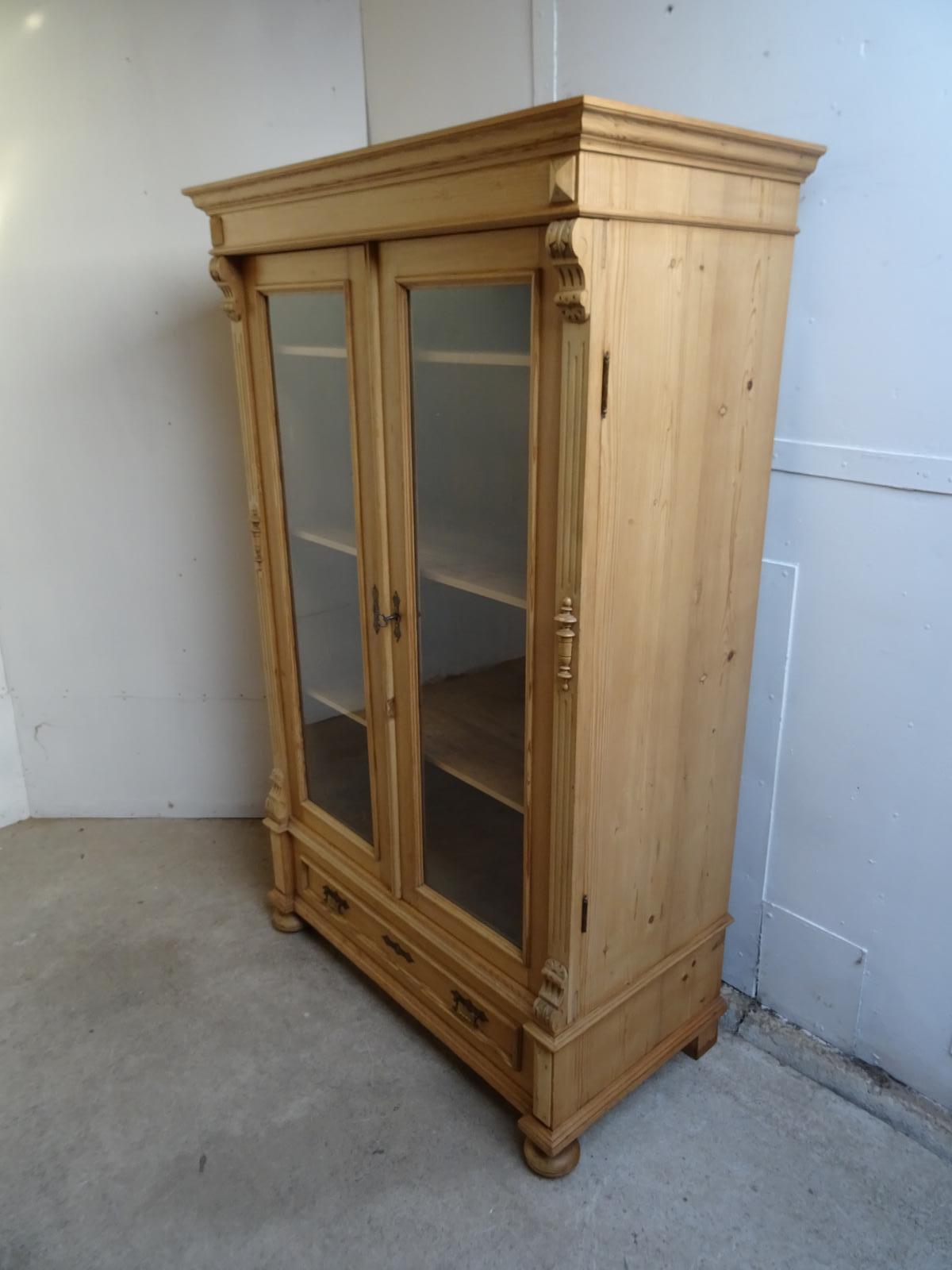 Large Antique / Old Pine Victorian Adjustable Bookcase / Display Cabinet