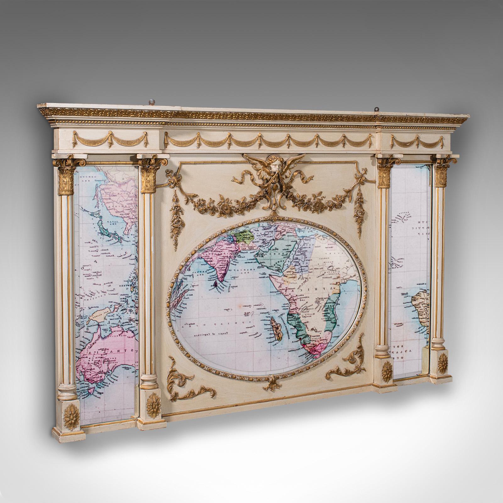 Large Antique Overmantle Mirror, Italian, 3 Panel, Triptych, Victorian c.1900