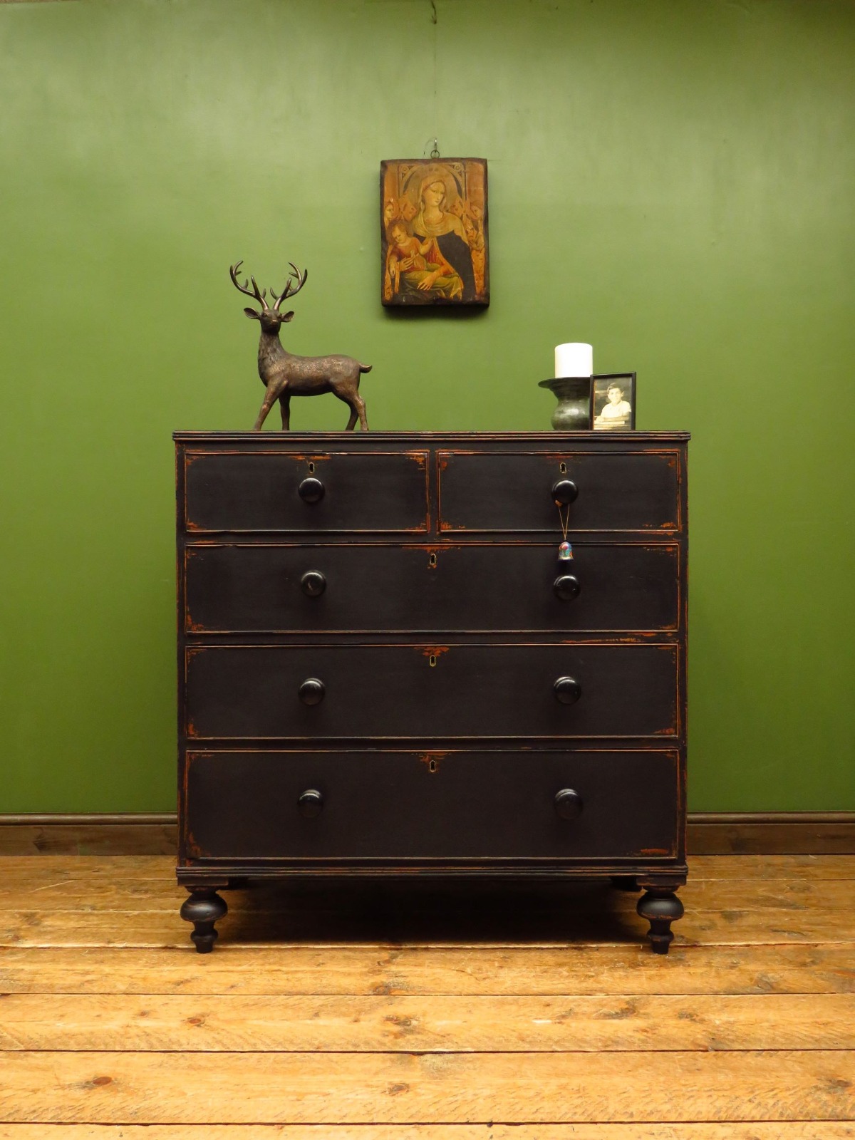 Large Antique Painted Black Chest of Drawers, Gothic Shabby Chic
