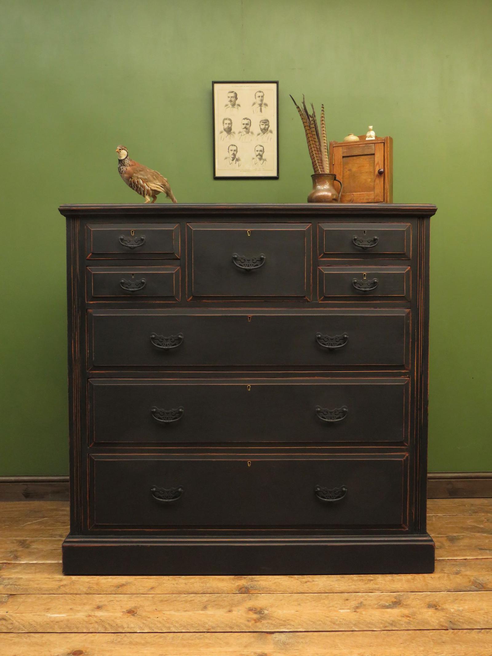 Large Antique Painted Black Chest of Drawers, Gothic Shabby Chic
