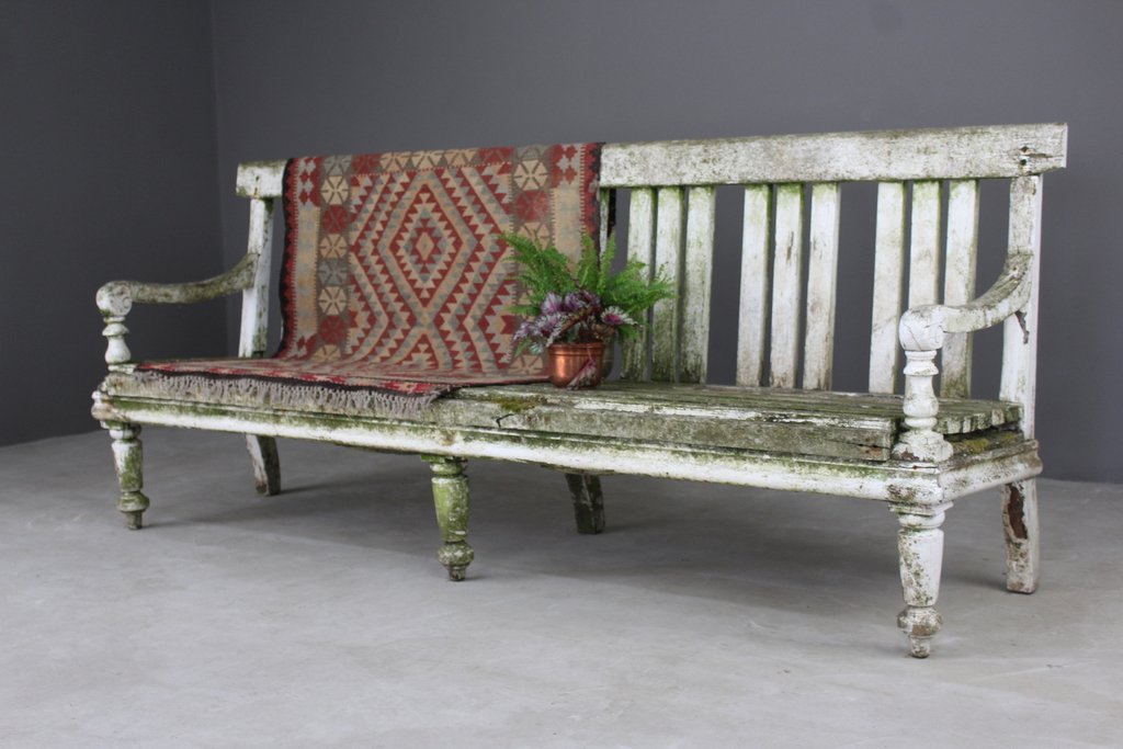Large Antique Painted Pine Garden Bench (1 of 1)