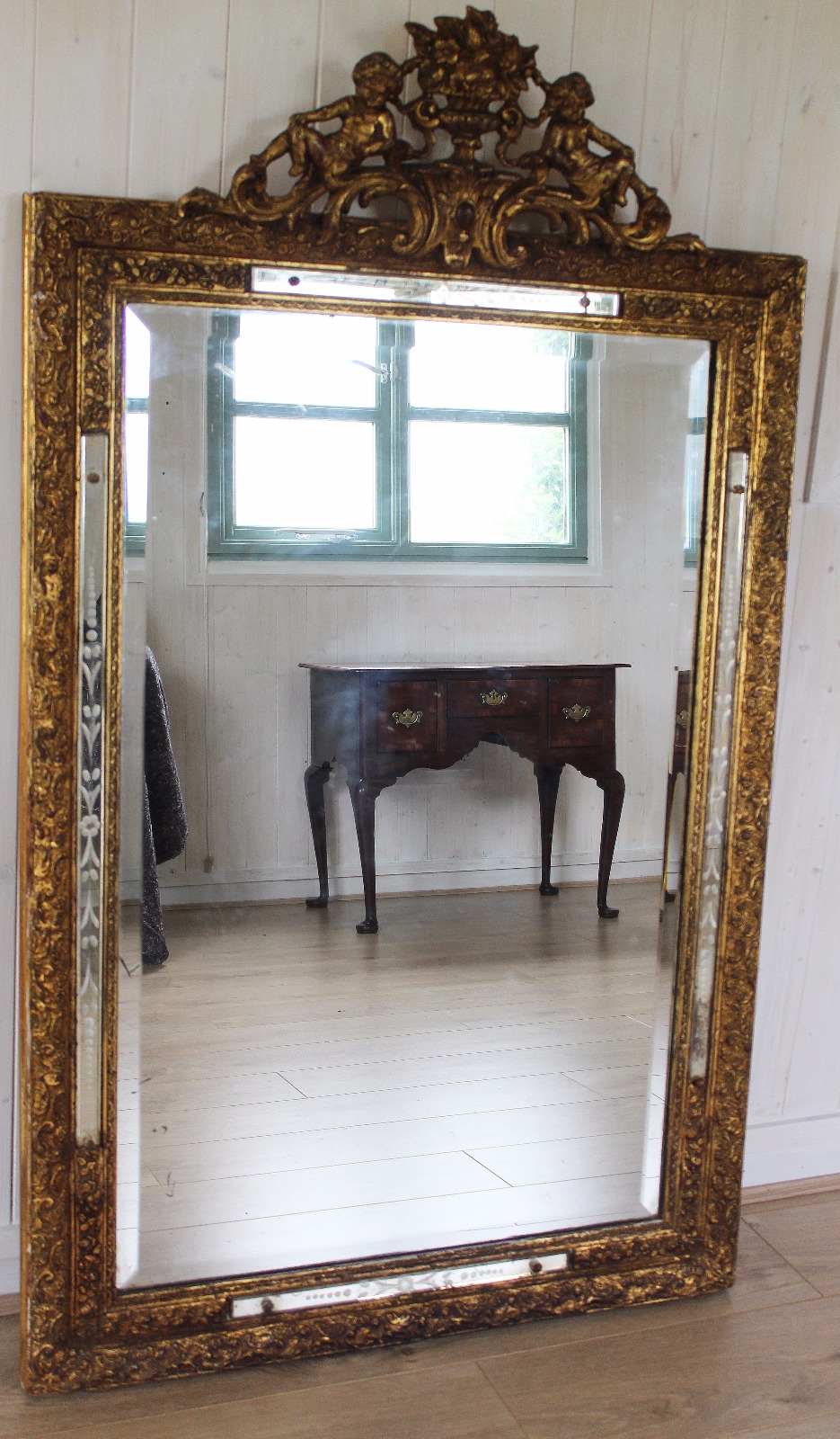 Large Antique Pier Glass Mirror - Gilded Gesso Frame in the Rococo Style