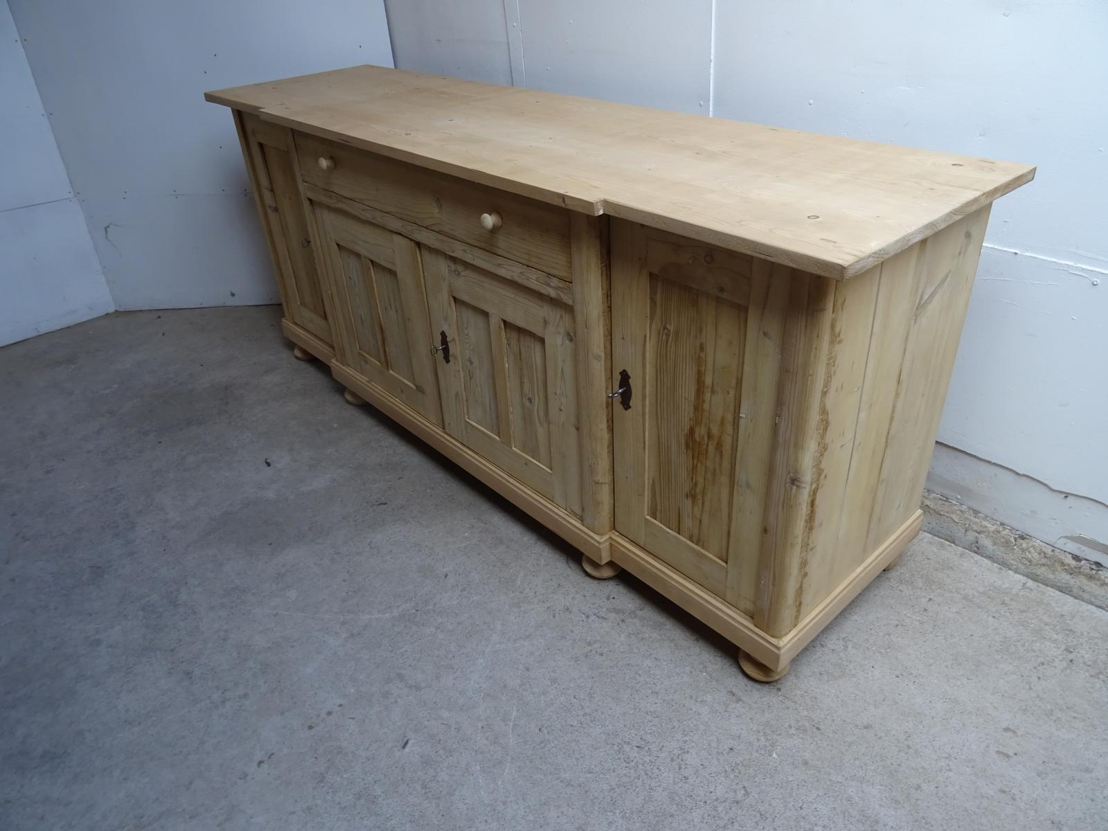 Large Antique Pine 4 Door 1 Drawer Dresser Base / TV Stand to wax / paint