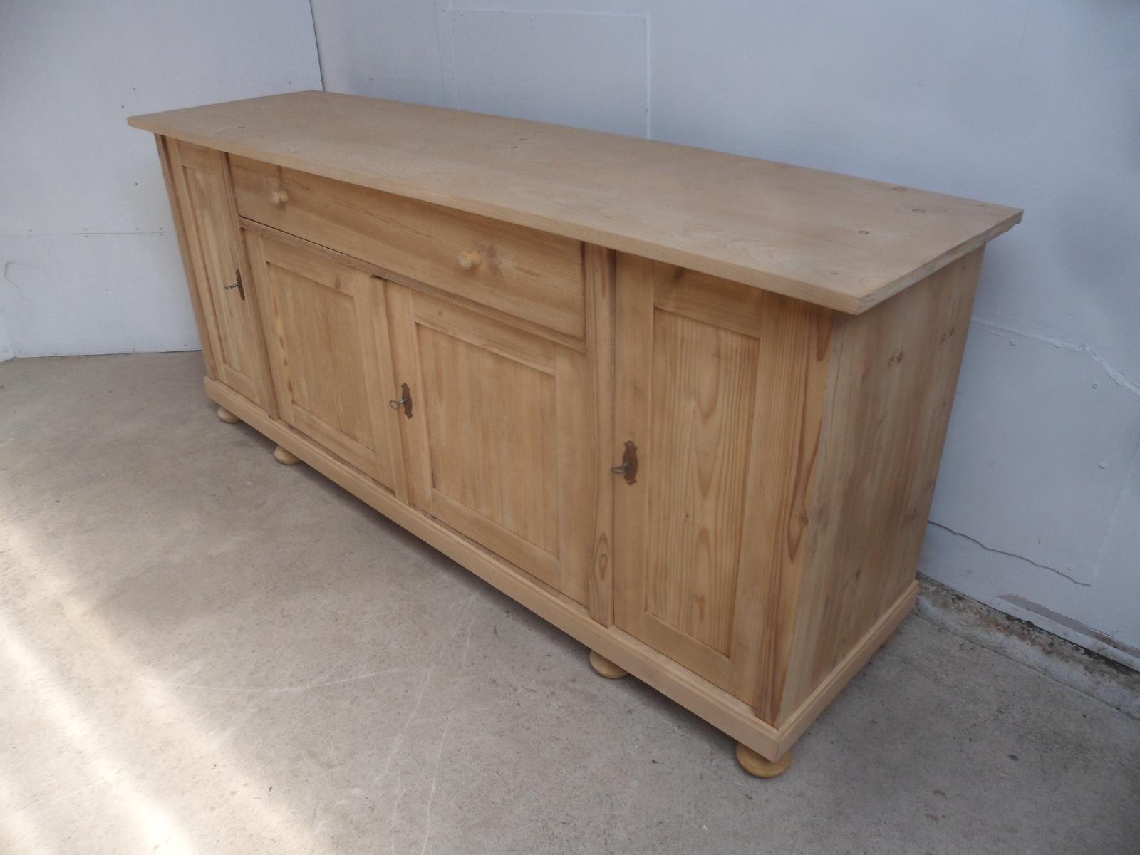 Large Antique Pine 4 Door Dresser Base / TV Stand / Sideboard to wax / paint