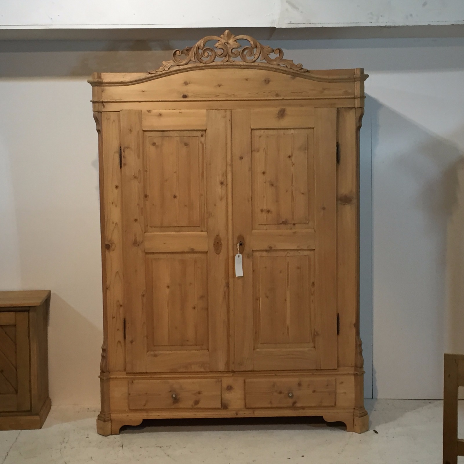 Large Antique Pine Double Wardrobe with Ornate Crown Top (1 of 1)