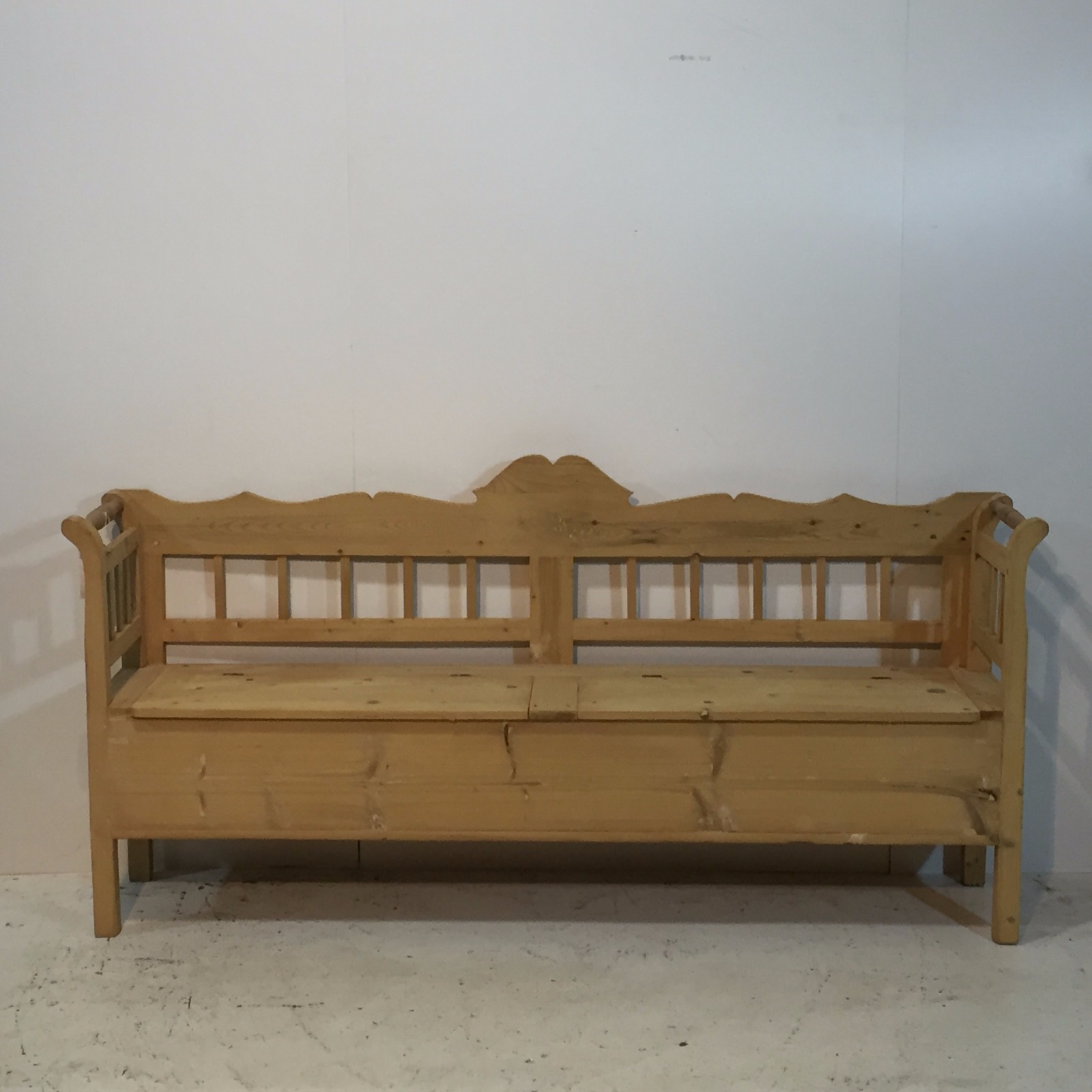 Large Antique Pine Farmhouse Storage Bench