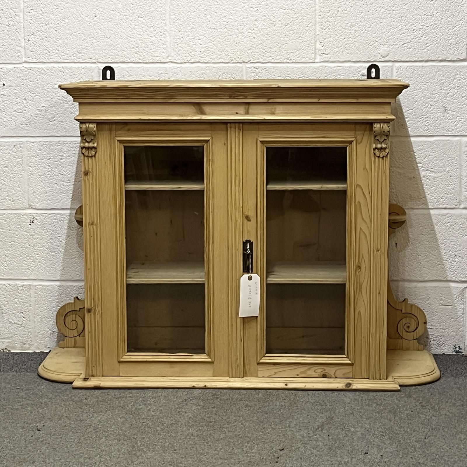 Large Antique Pine Glazed Wall Hanging Cabinet