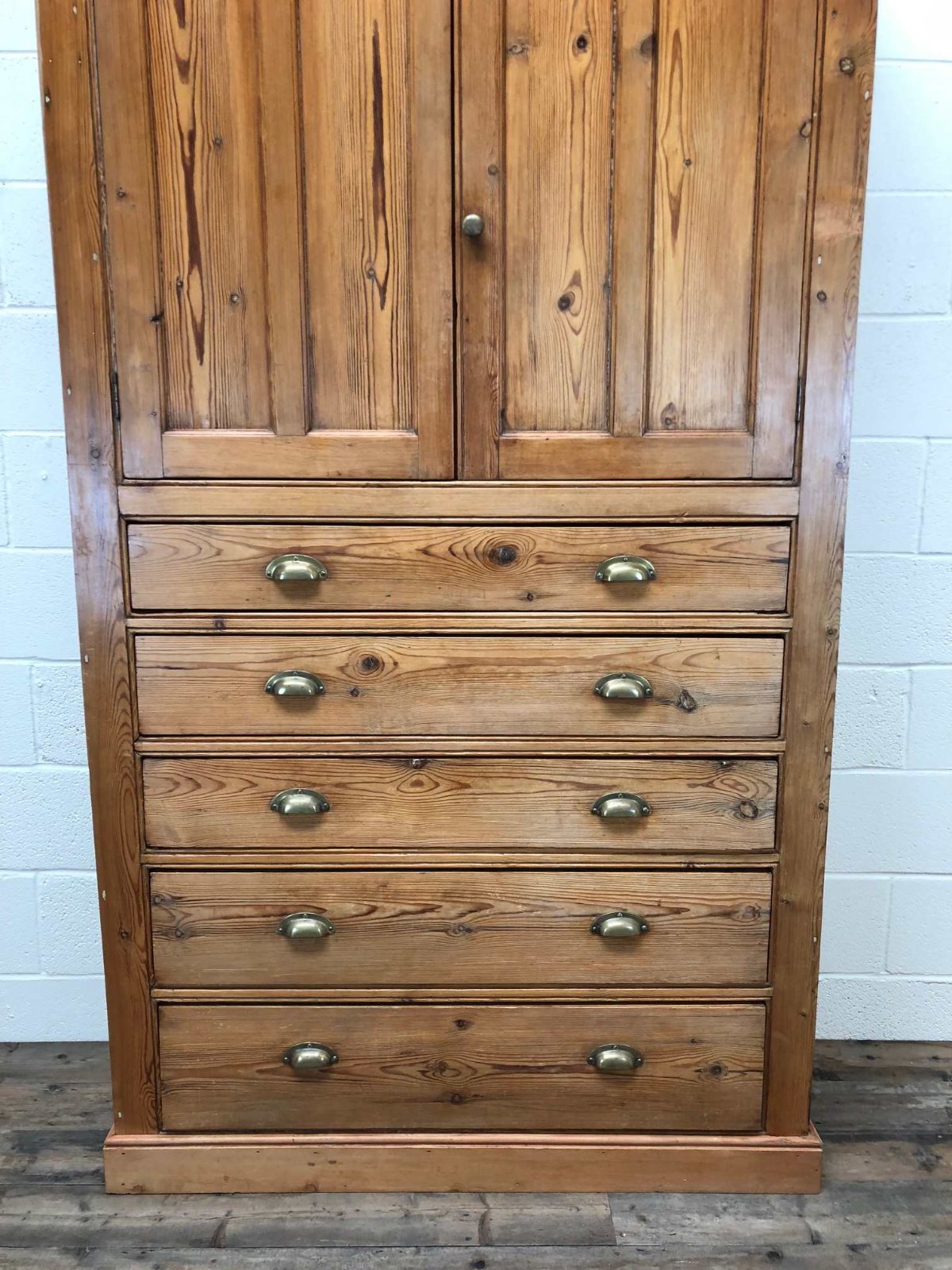 Large Antique Pine Two Door Cupboard with Drawers (1 of 1)