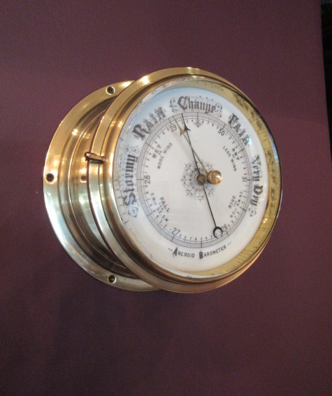 Large Antique Polished Brass Bulkhead Marine Barometer