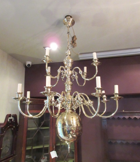 Large Antique Polished Brass Two Tier Chandelier