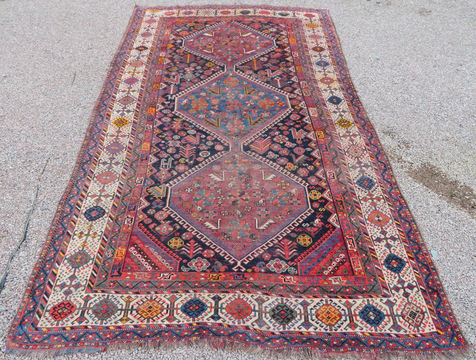 Large Antique Qashqai Main Carpet. Shekarlu Border, filled With Tribal Motifs & Peacocks, circa 1870s.