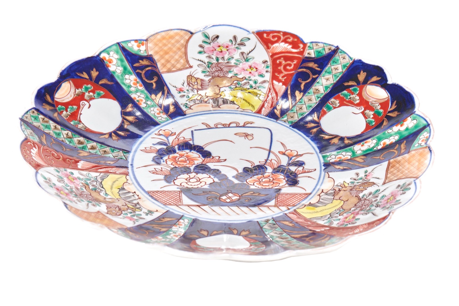 Large Antique Scalloped Edge Japanese Imari Porcelain Dish