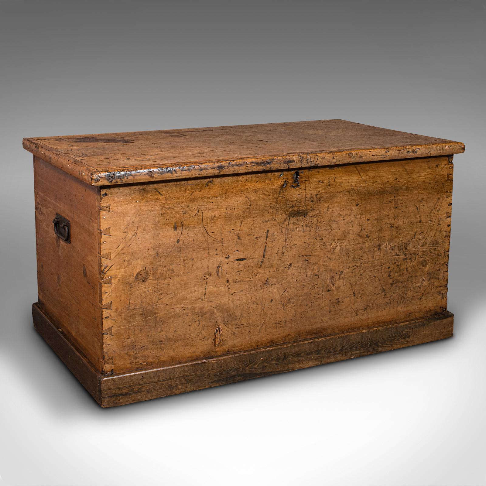 Large Antique Shipping Trunk, English, Pine Linen Chest, Coffee Table, Victorian