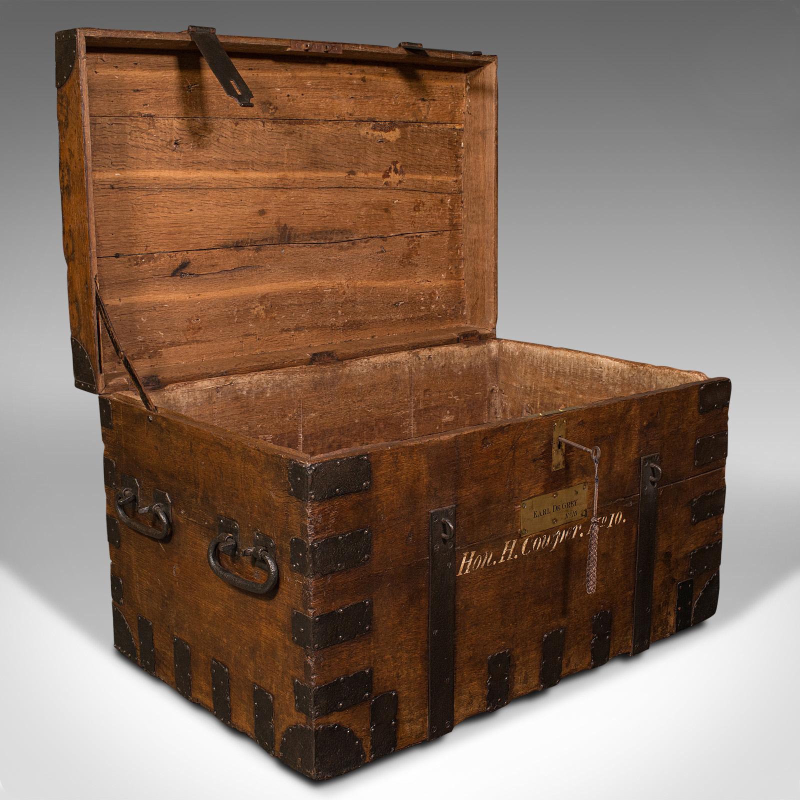 Large Antique Silver Chest, English, Oak, Iron Bound, Campaign Trunk, Victorian