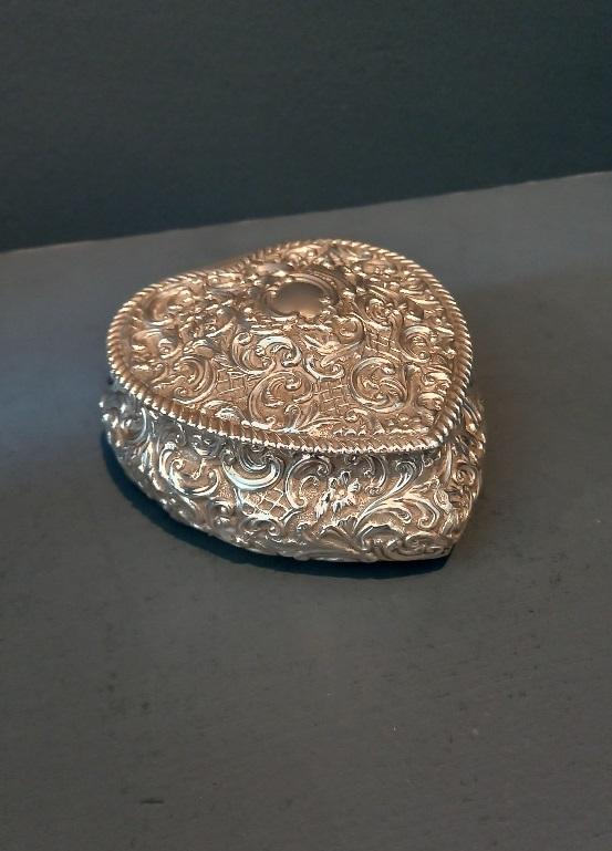 Large Antique Silver Heart Shaped Jewellery Box