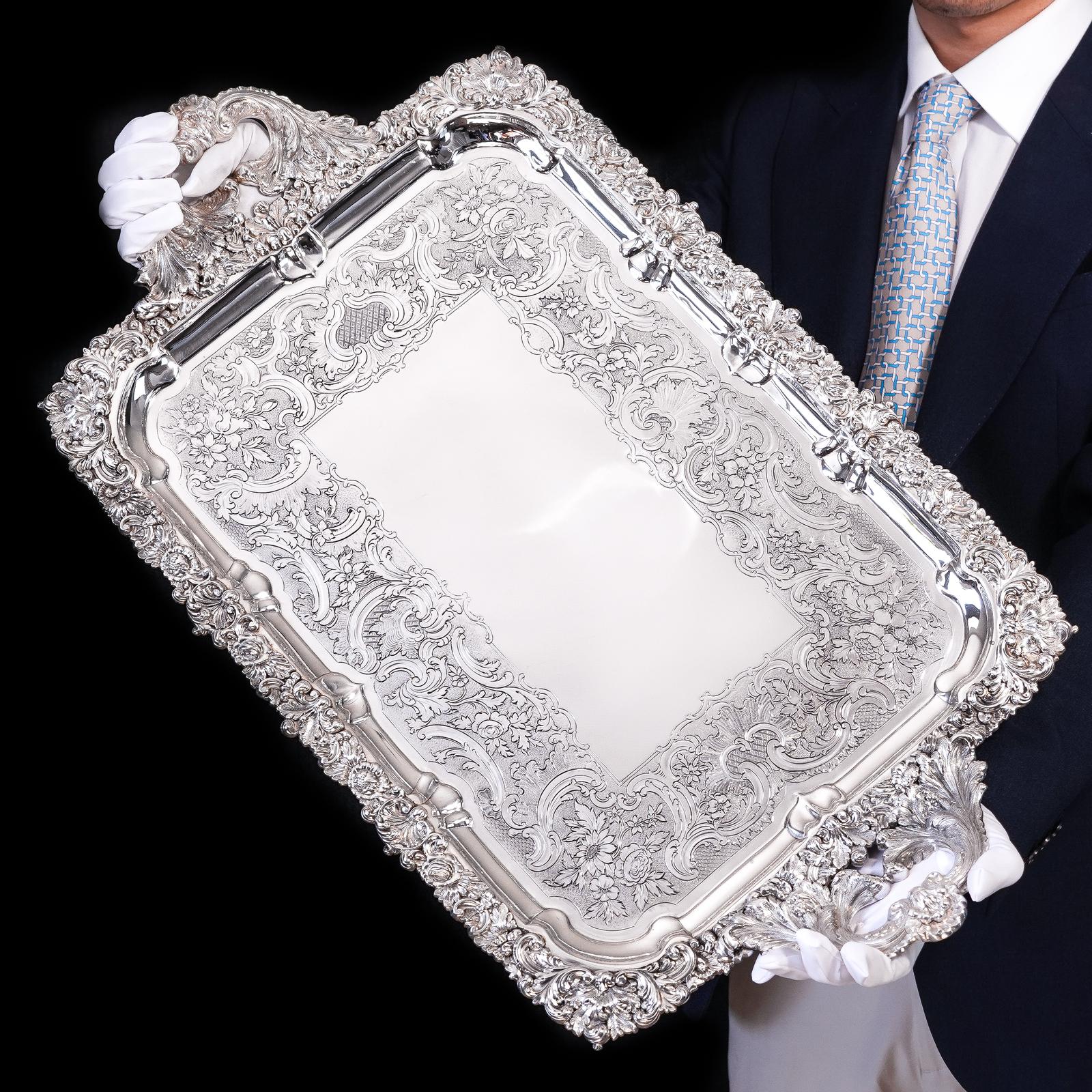 Large Antique Solid Silver Georgian Tray / Salver (70cm) with Chased Border - William Marshall, 1828 (1 of 20)
