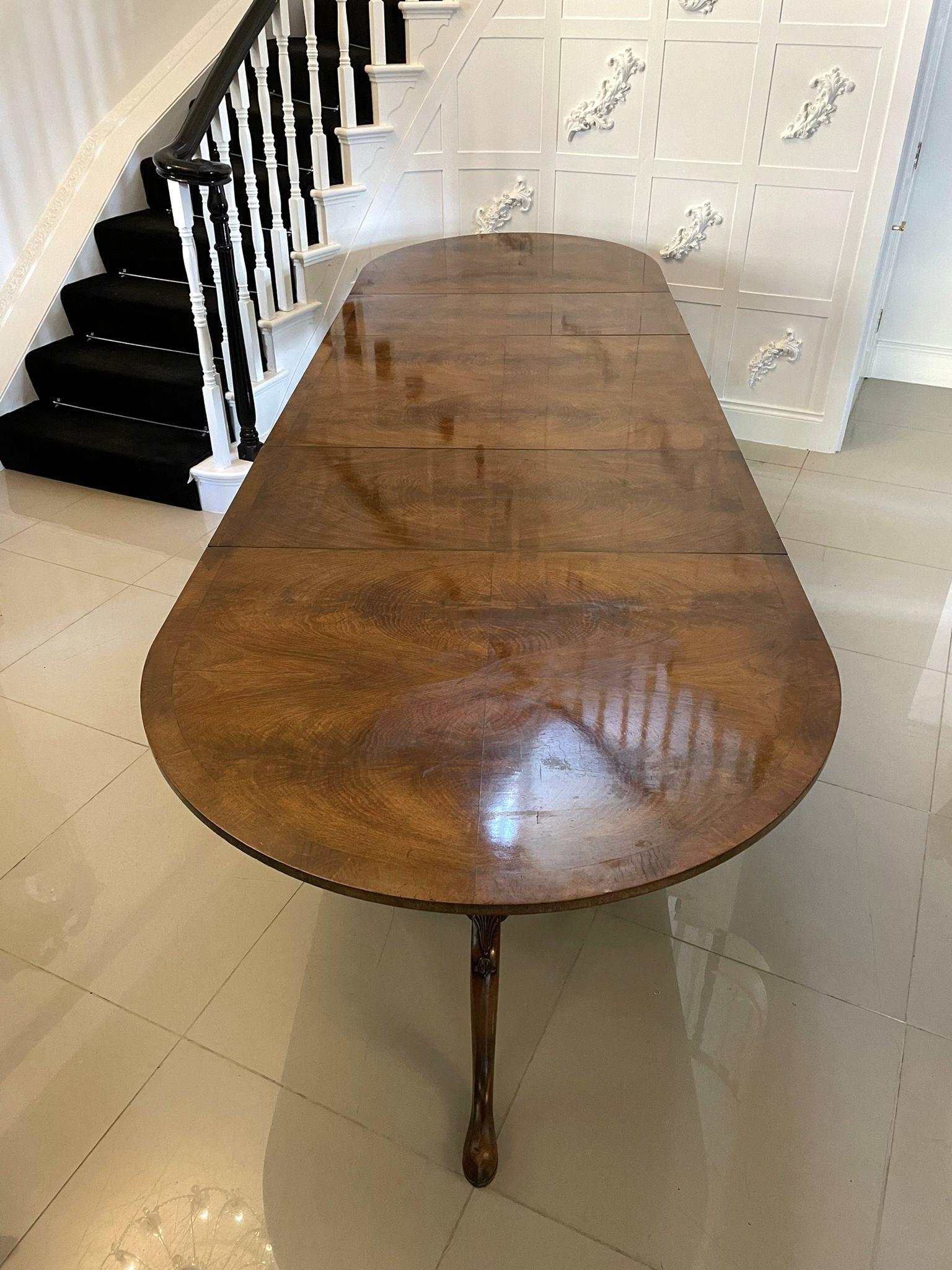 Large Antique Superb Quality Figure Walnut Triple Pedestal Dining Table