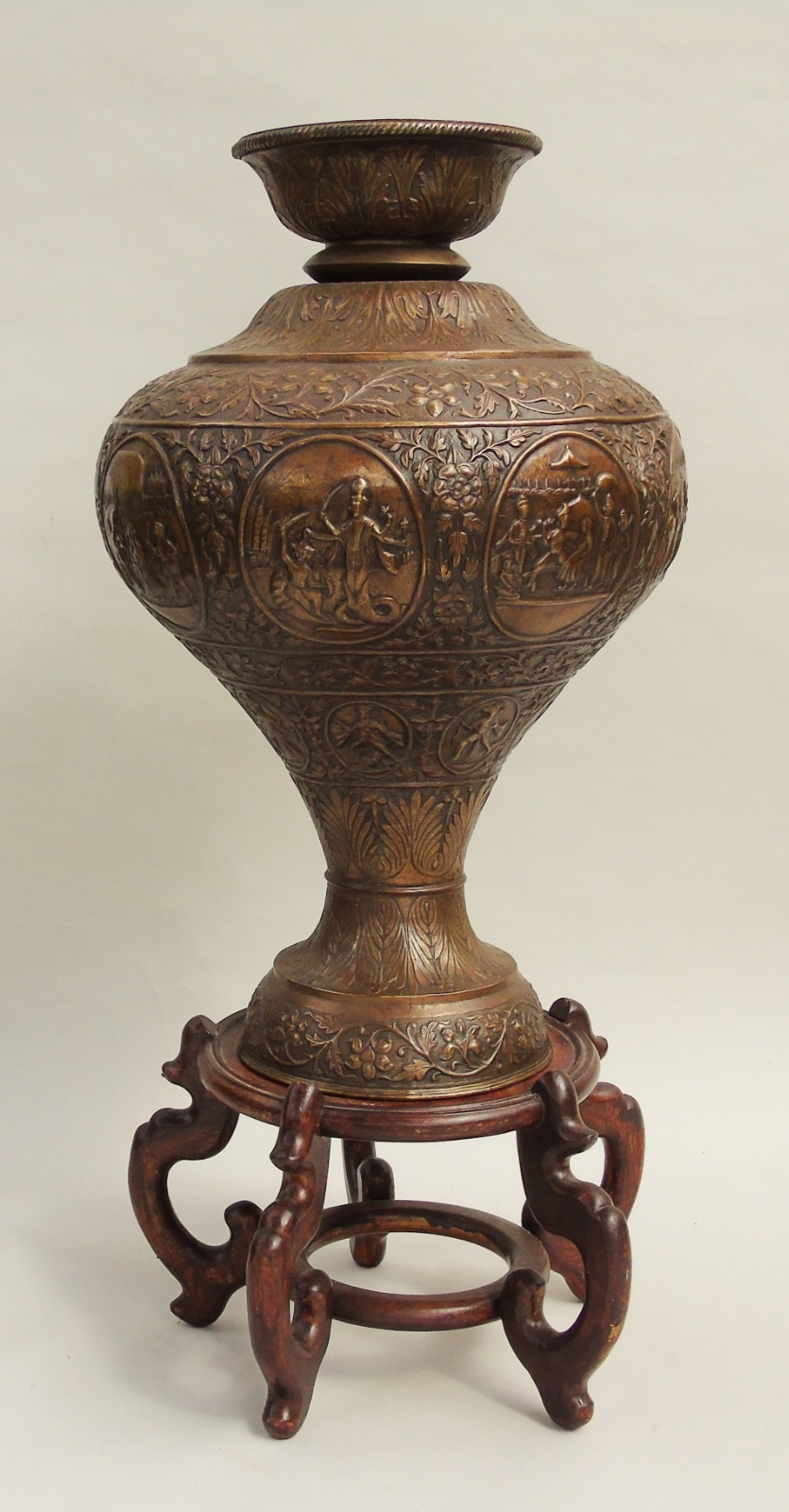 Large Antique Thai Copper Vase On Stand (1 of 10)