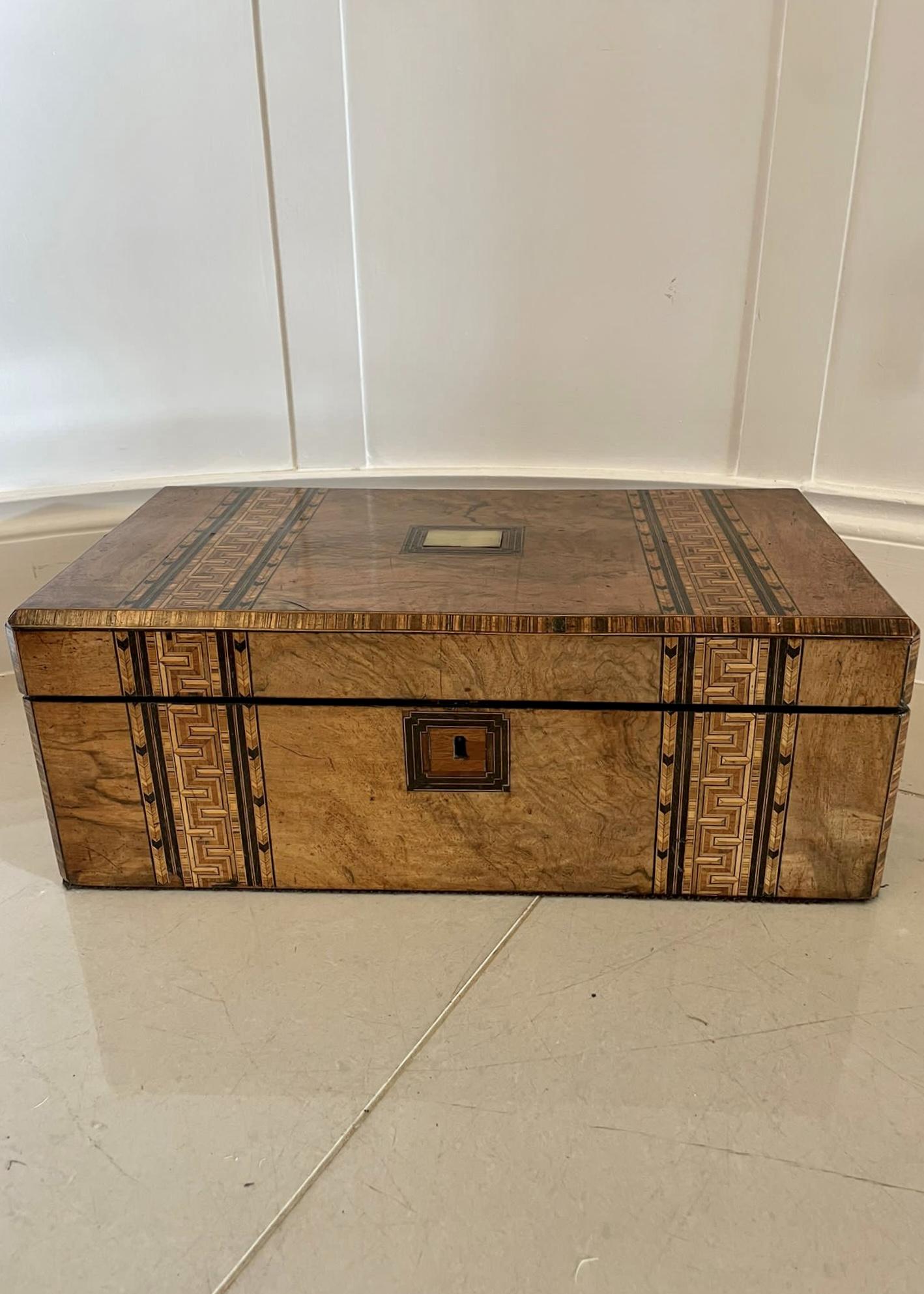 Large Antique Victorian Quality Burr Walnut Parquetry Inlaid Writing Box (1 of 17)