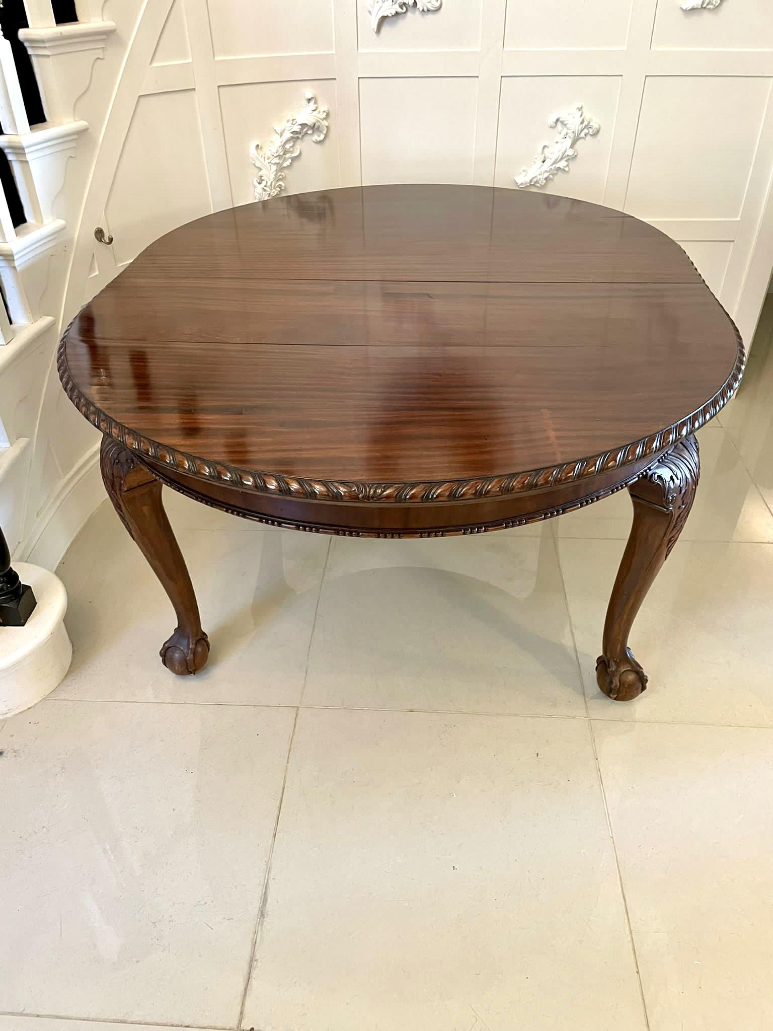 Large Antique Victorian Quality Carved Mahogany Extending Dining Table