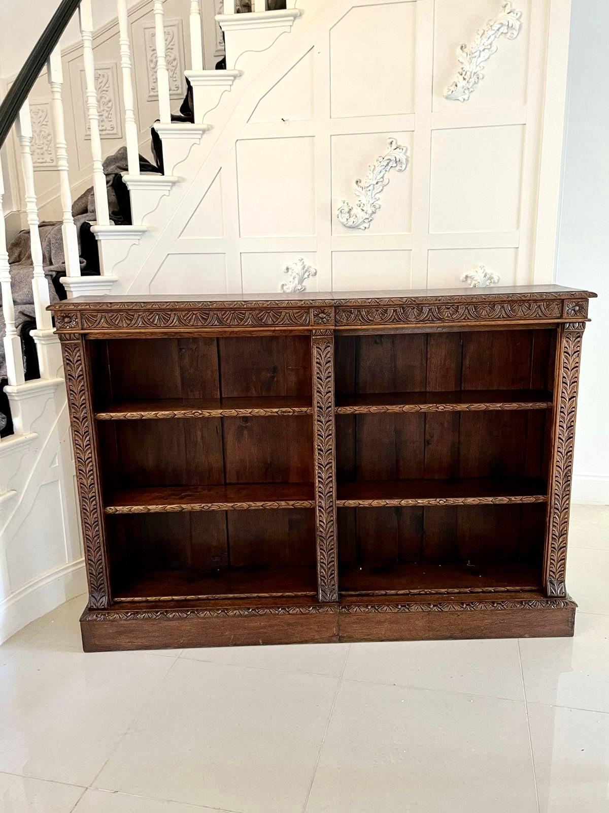 Large Antique Victorian Quality Carved Oak Open Bookcase