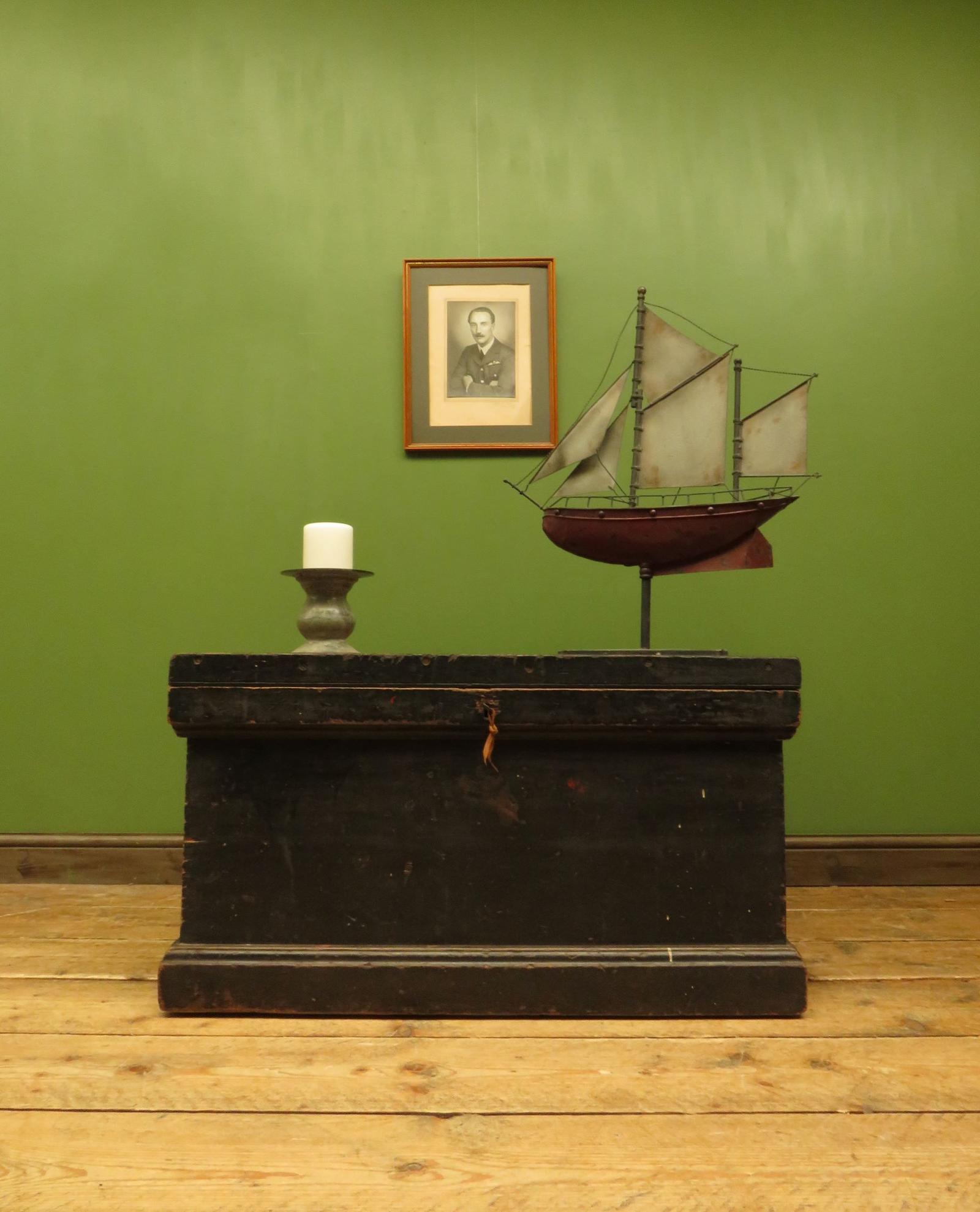 Large Antique Victorian Shipwrights Chest with Fitted Interior & Working Key
