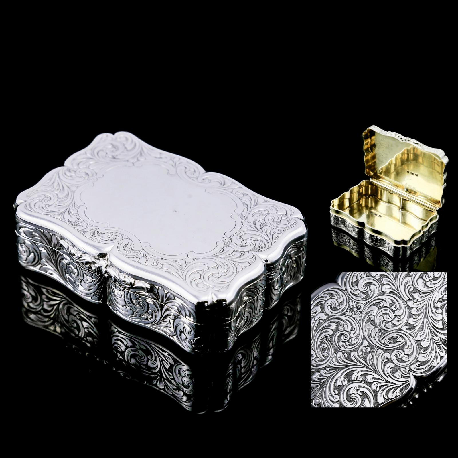 Large Antique Victorian Solid Sterling Silver Table Snuff Box with Intricate Engravings - Edward Smith 1853 (1 of 19)