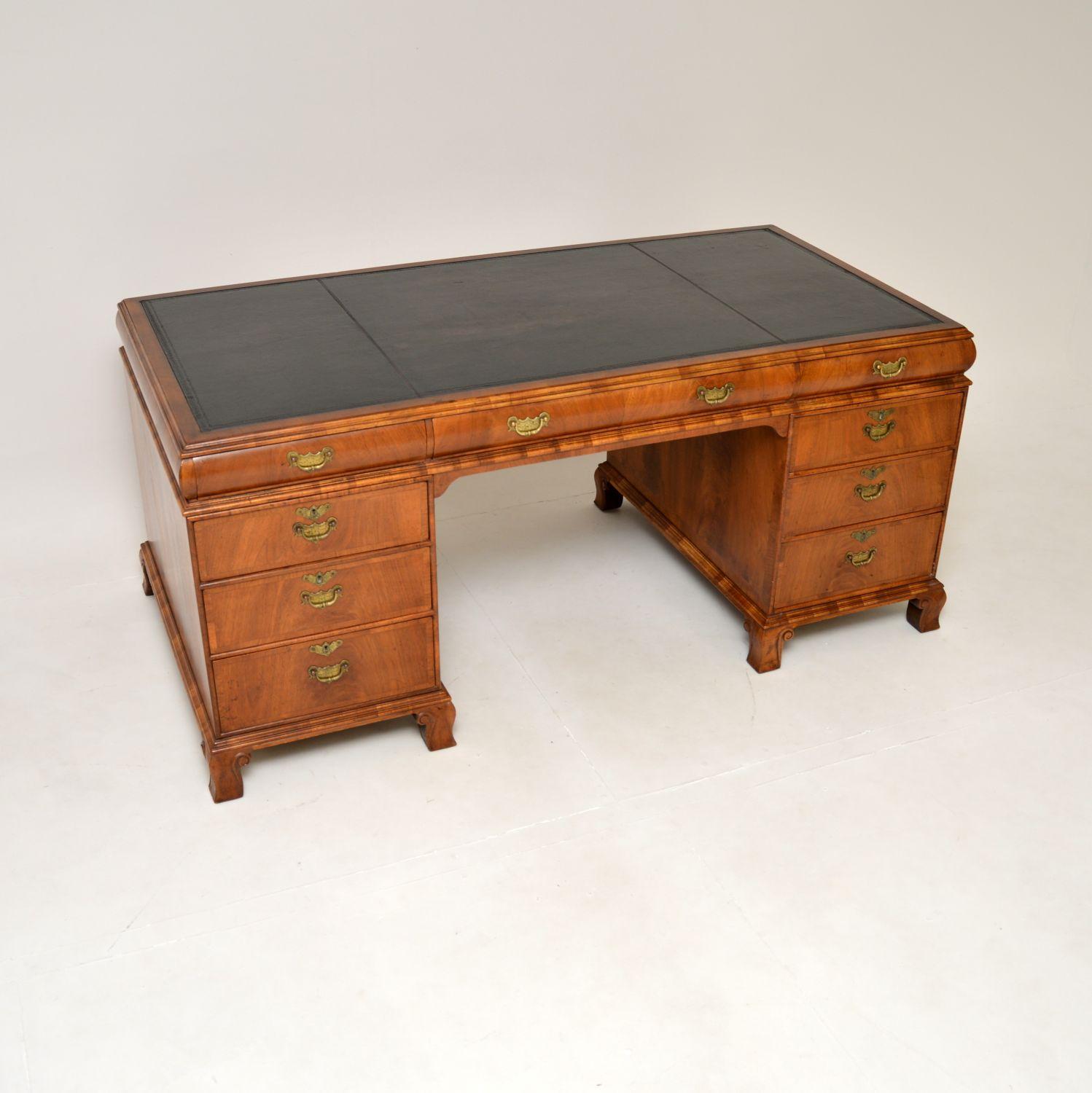 Large Antique Walnut Leather Top Partners Desk (1 of 12)