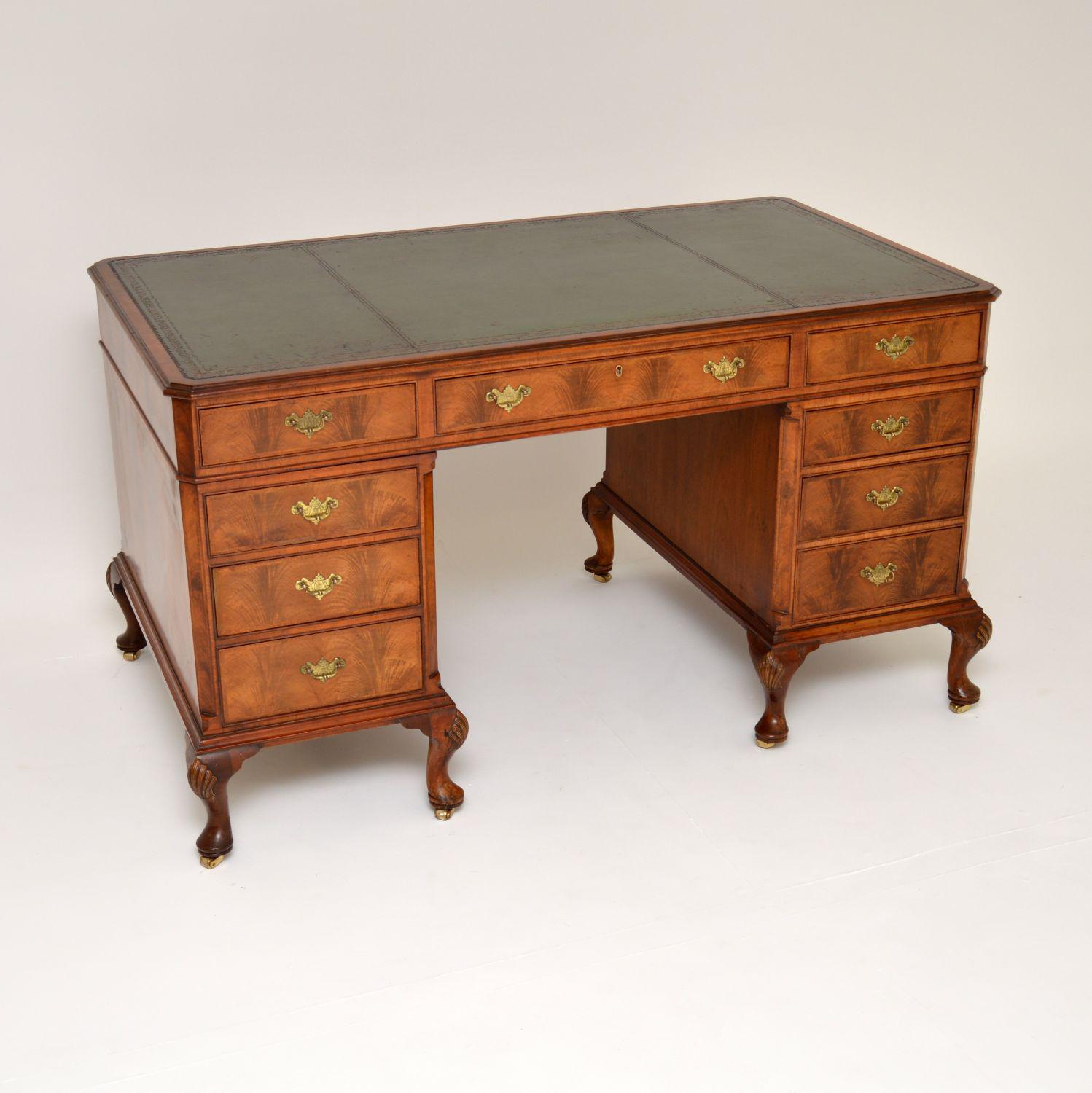 Large Antique Walnut Leather Top Pedestal Desk (1 of 12)