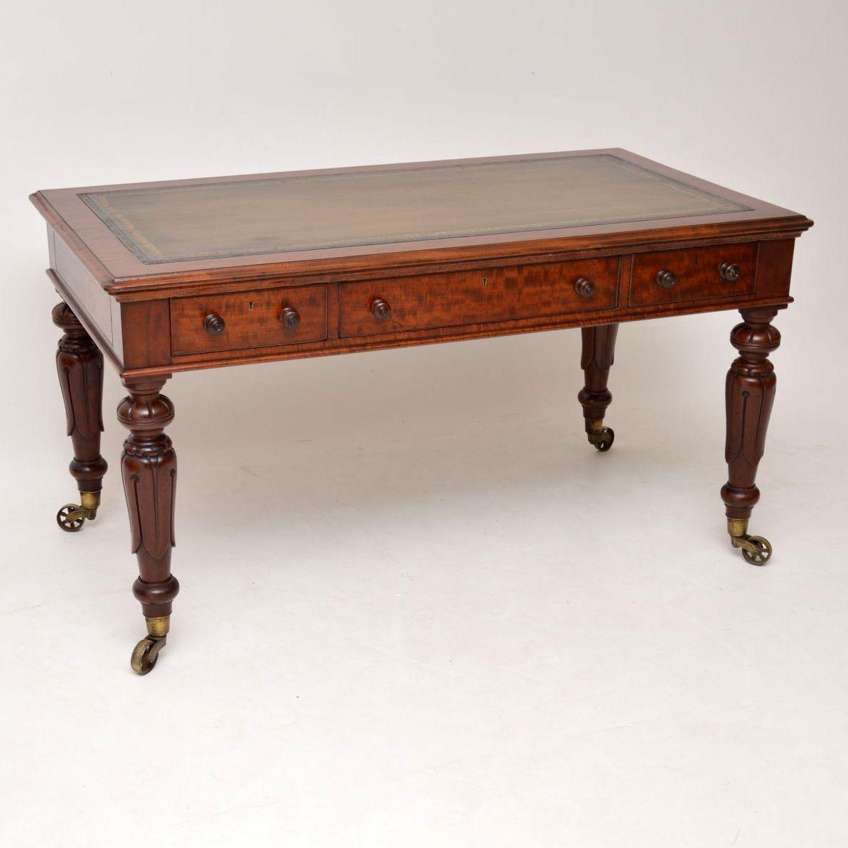 Large Antique William IV Mahogany Leather Top Writing Table / Desk