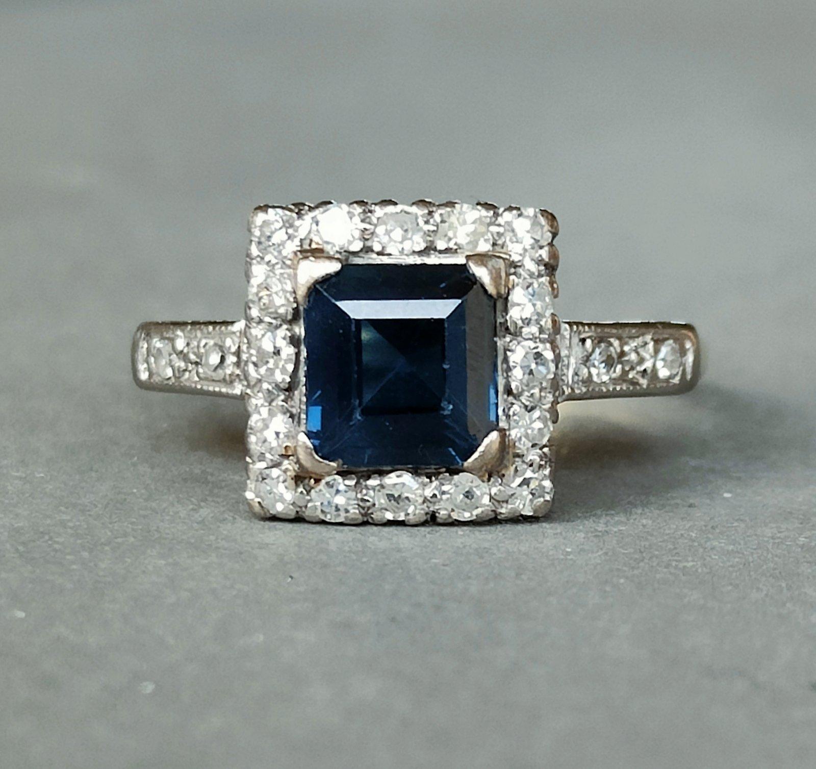 Large Art Deco 18ct Gold Platinum Sapphire Diamond Cluster Ring (1 of 10)