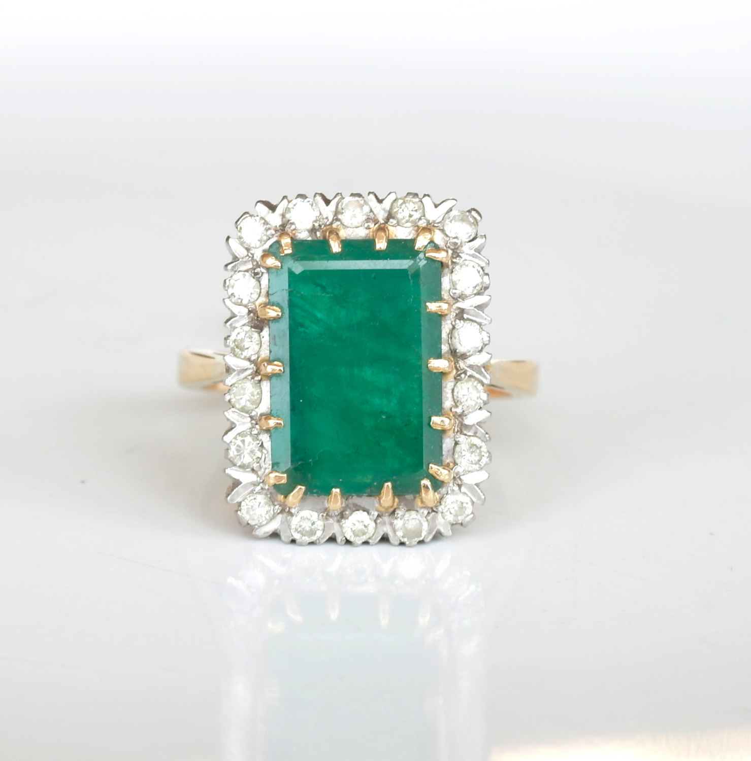 Large Art Deco 5ct Emerald Diamond Ring 18k 18 carat Yellow Gold Band 7.5 (US), P (UK)