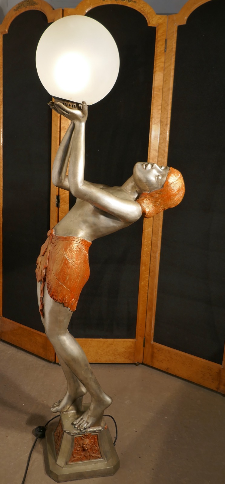Large Art Deco Female Sculpture Floor Lamp, after Auguste Moreau Signed