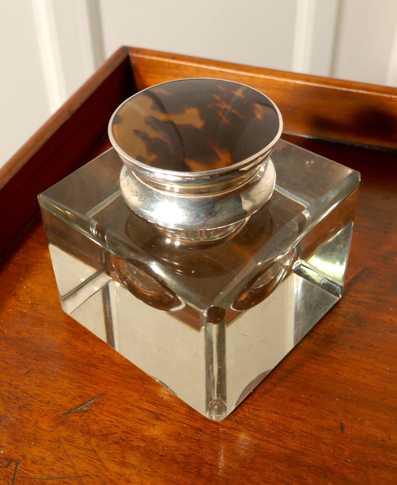 Large Art Deco Glass & Silver Inkwell by Asprey London