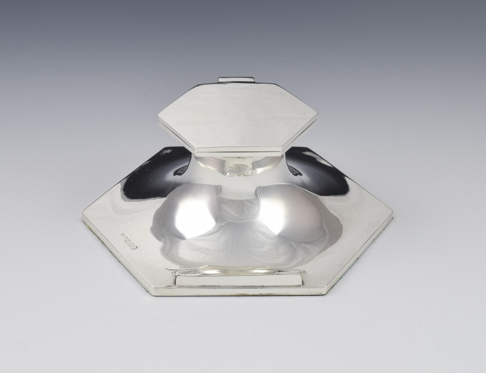 Large Art Deco Hexagonal Shape Silver Capstan Inkwell - Walker & Hall